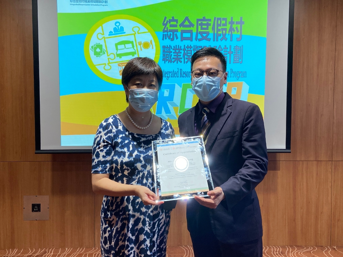 The Centre for Tourism and Integrated Resort Studies (CTIRS) under the Faculty of Business Administration (FBA), University of Macau (UM), recently held the Integrated Resort Career Simulation Programme (IRCSP). The programme aimed to help students learn more about the operation of integrated resorts, the responsibilities of the main departments, and the various job opportunities in the industry. The first five sessions of the experiential activities in the programme were very well received, and they were attended by over 100 students, including those from UM, Sacred Heart Canossian College (English Section), and Keang Peng School.