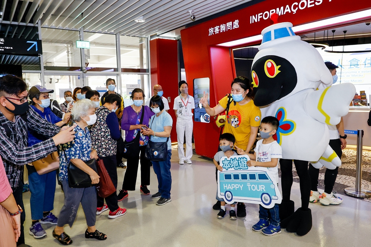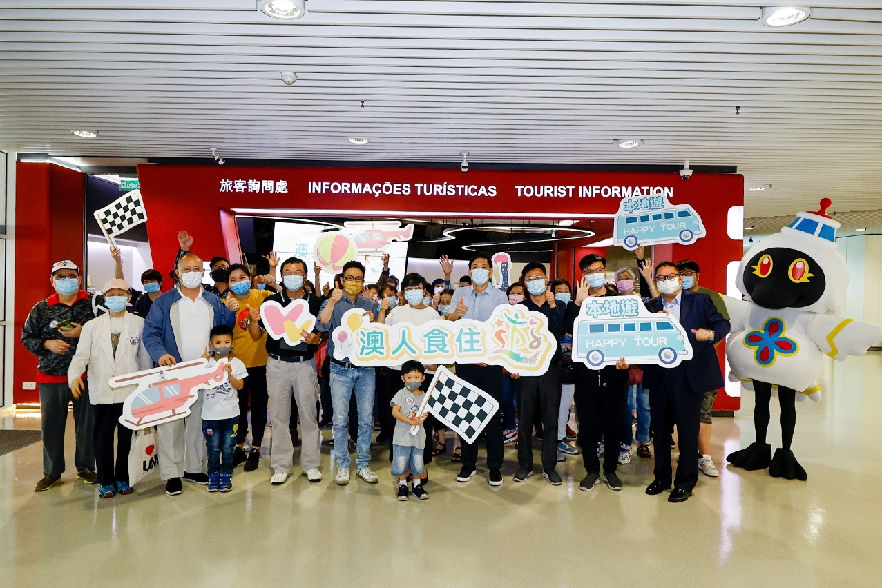 Following the start of hotel staycations under the “Stay, Dine and See Macao” project on 23 April, the first batch of 6 groups with around 230 participants also embarked upon local tours smoothly at the Outer Harbour Ferry Terminal at 9:00 this morning (25 April). Macao Government Tourism Office (MGTO) Director Maria Helena de Senna Fernandes, Deputy Directors Cheng Wai Tong and Ricky Hoi joined the representatives of the “Stay, Dine and See Macao” Task Force to converse and take photos with tour group members before their departure. MGTO Director Senna Fernandes was delighted to hear about residents’ interest in the “Stay, Dine and See Macao” project. She believes the local tours not only can familiarize residents with local tourism resources, but also will bolster the travel trade and stimulate spending in communities.