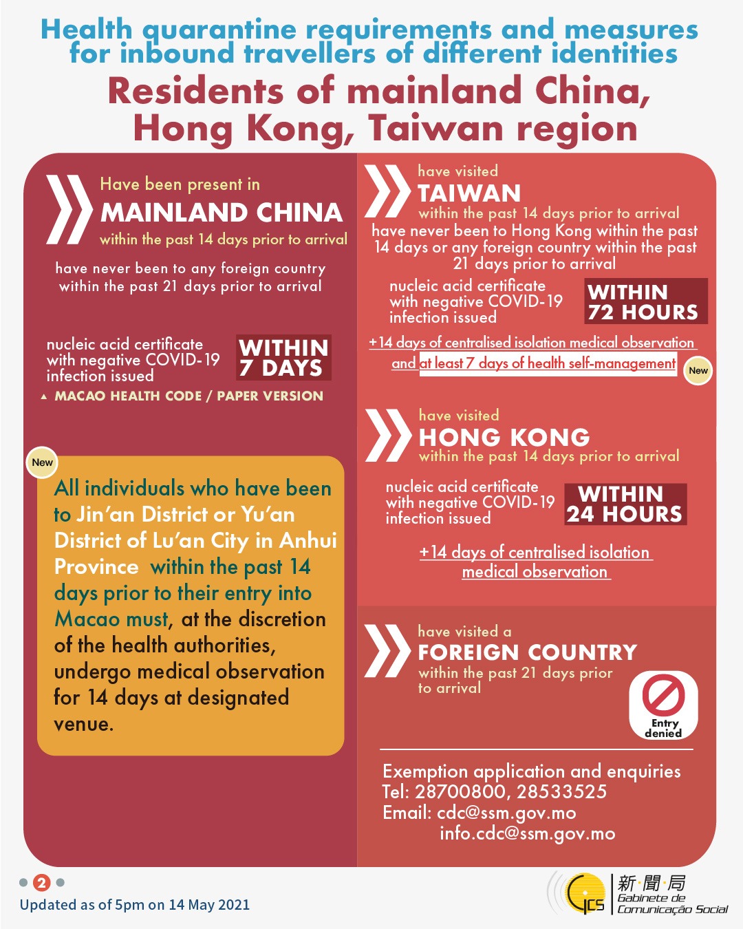 To get the latest official news, please subscribe the Government Information Bureau’s Telegram News Channel at https://t.me/macaogcsEN.