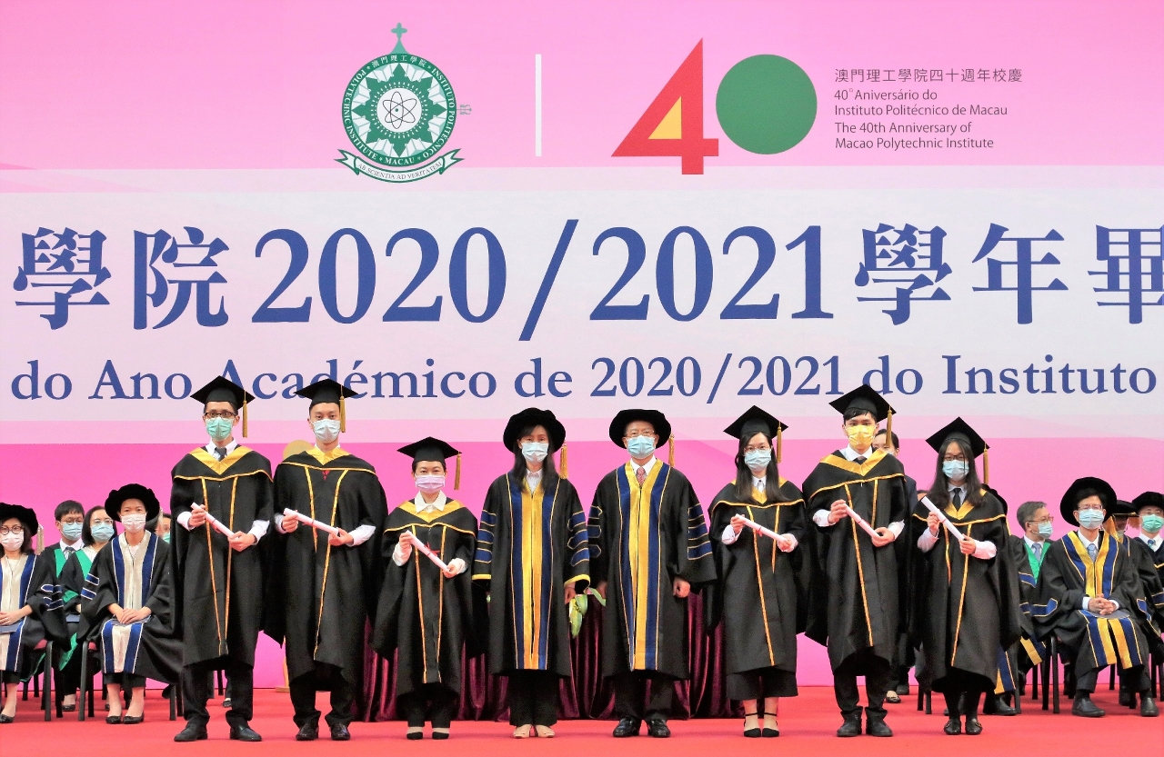 The Macao Polytechnic Institute successfully held its graduation ceremony for the 2020/2021 academic year both online and offline simultaneously at the MPI Multisport Pavilion at 4 pm on June 10th. The graduation ceremony proceeded with the hoisting of the national flag, playing and singing of the national anthem, and awarding of degree certificates. 788 graduate and undergraduate students completed their studies and set sail on new journeys. On behalf of the Chief Executive of the Macao SAR and MPI Chancellor, Ao Ieong U, Secretary for Social Affairs and Culture, stated that the Macao SAR government will continue to support the Macao Polytechnic Institute in its endeavors to implement the management philosophy of “equal emphasis on teaching and research”, to continue cultivating high-caliber talents for Macao and the country, and to excel in its academic research achievements.