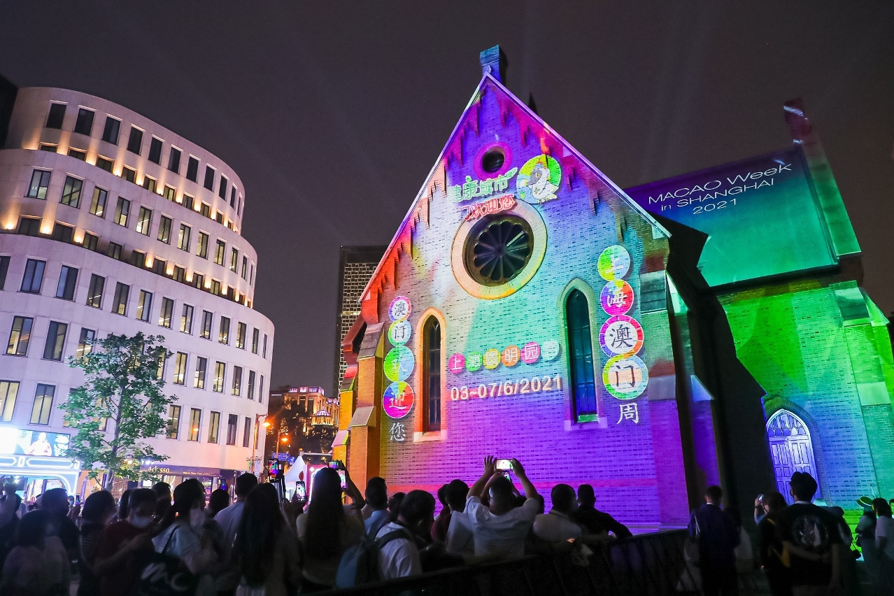 To promote the Macao Week in Shanghai and spotlight Macao as a healthy destination welcoming visitors, mapping shows were projected upon the façade of Union Church on schedule under the theme of MAK MAK and Macao’s East-and-West cultural symphony during the roadshow, drawing passersby to enjoy the feast for the eyes.