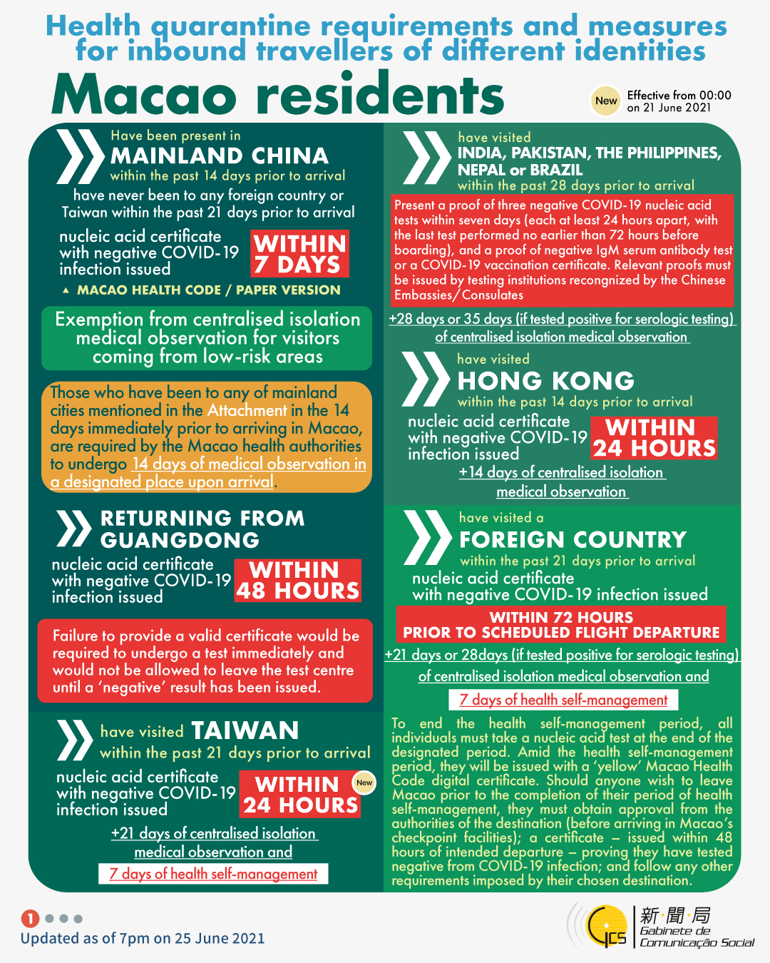 [infographic] 25 June 2021 health quarantine requirements and measures for inbound travellers