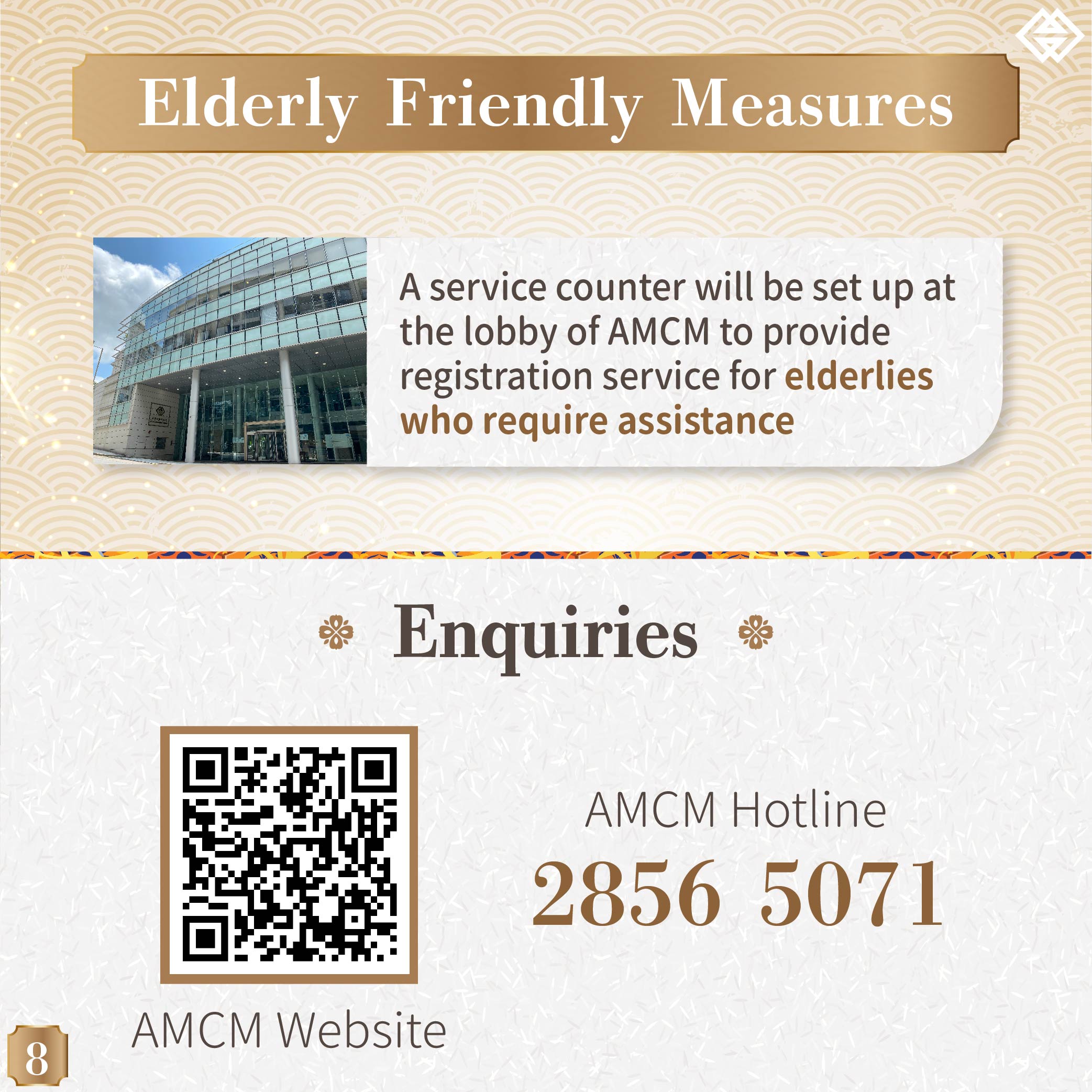 Holders of Macao SAR resident identity card, and who are aged 18 or above, can register online for subscription of the said coins via AMCM webpage (https://www.amcm.gov.mo/static/COCSCollection/terms_pt.html) from 9:00am on 12 July 2021 until 6:00pm on 30 July 2021. During the mentioned period, a service counter will be set up at the lobby of AMCM to provide registration service for those elderly citizens who require assistance.