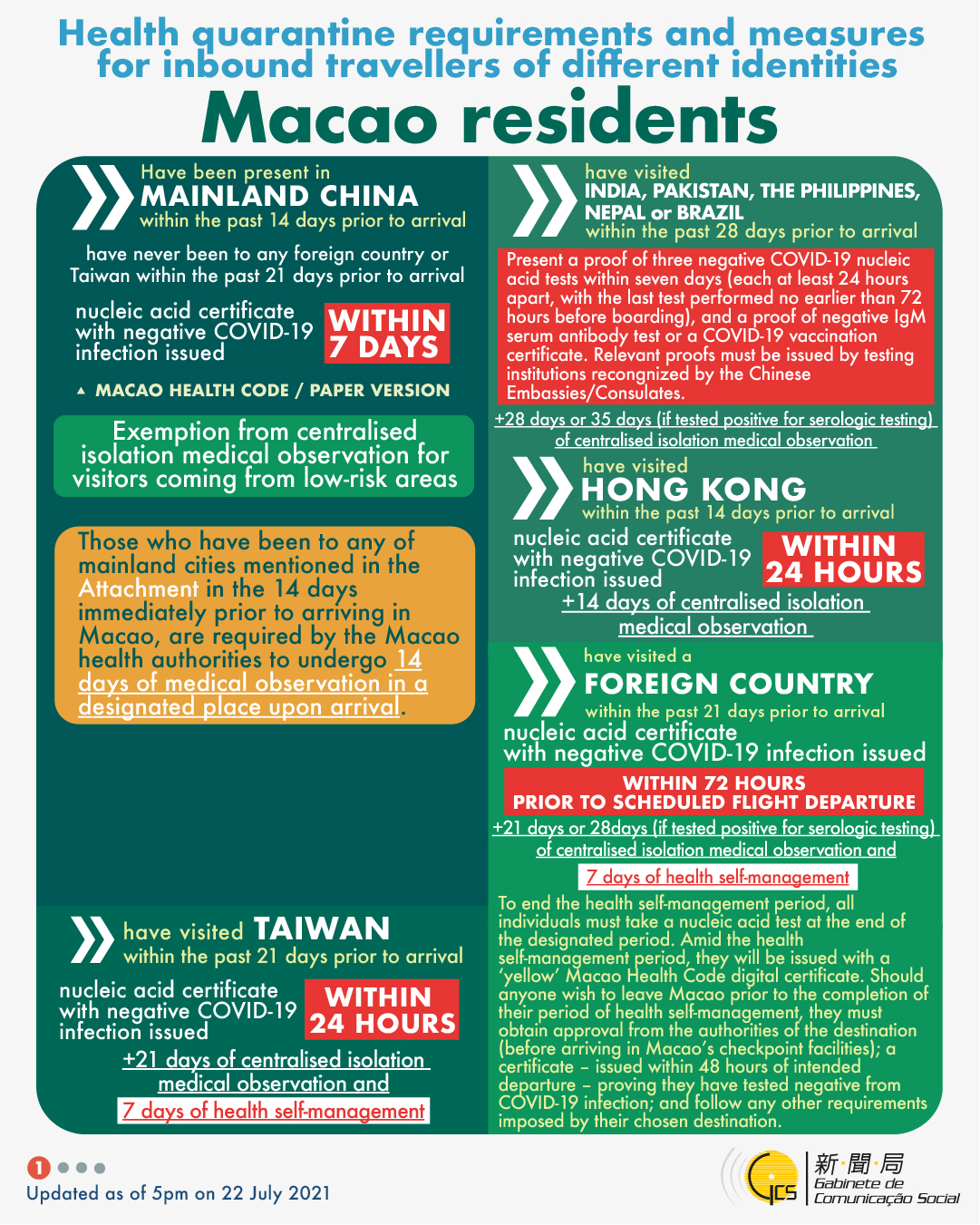 [infographic] 22 July 2021 health quarantine requirements and measures for inbound travellers