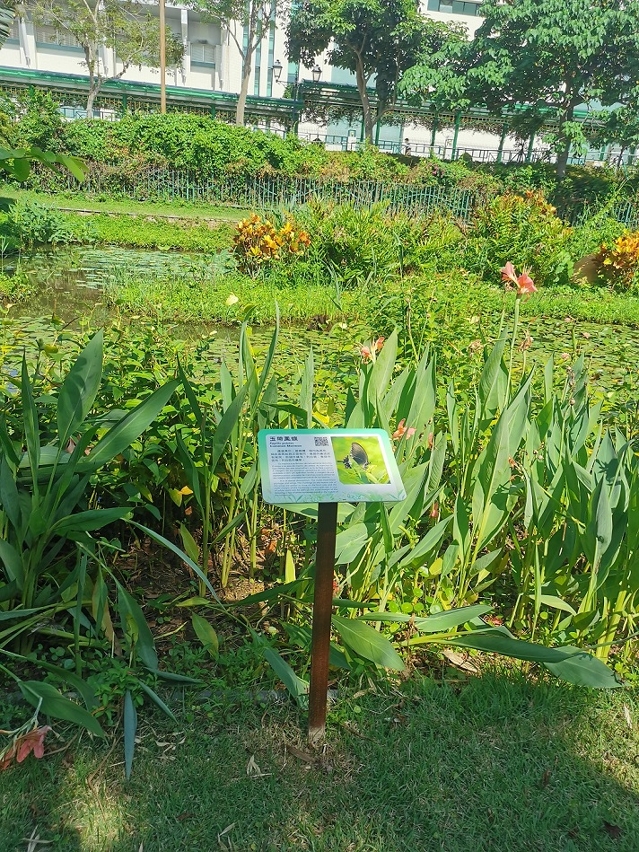 In recent years, IAM has continuously carried out conservation of the freshwater wetlands of Macao. After considering the balance between ecological conservation and education of popular science, opening to a suitable extent is arranged so that the public can experience for themselves a green living style in harmony with nature. To make it convenient for the public to visit and learn about the biodiversity in the western section of the wetland, explanation boards have been installed in the area to introduce the basic information about the birds, insects, aquatic plants, etc. Meanwhile, the public and visitors can scan the QR codes available on the explanation boards to browse the Biological Database of Macao for detailed popular science information about the species.