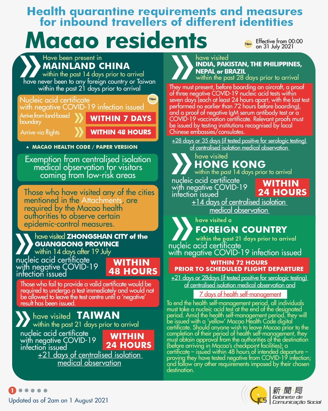 [infographic] 1 August 2021 health quarantine requirements and measures for inbound travellers