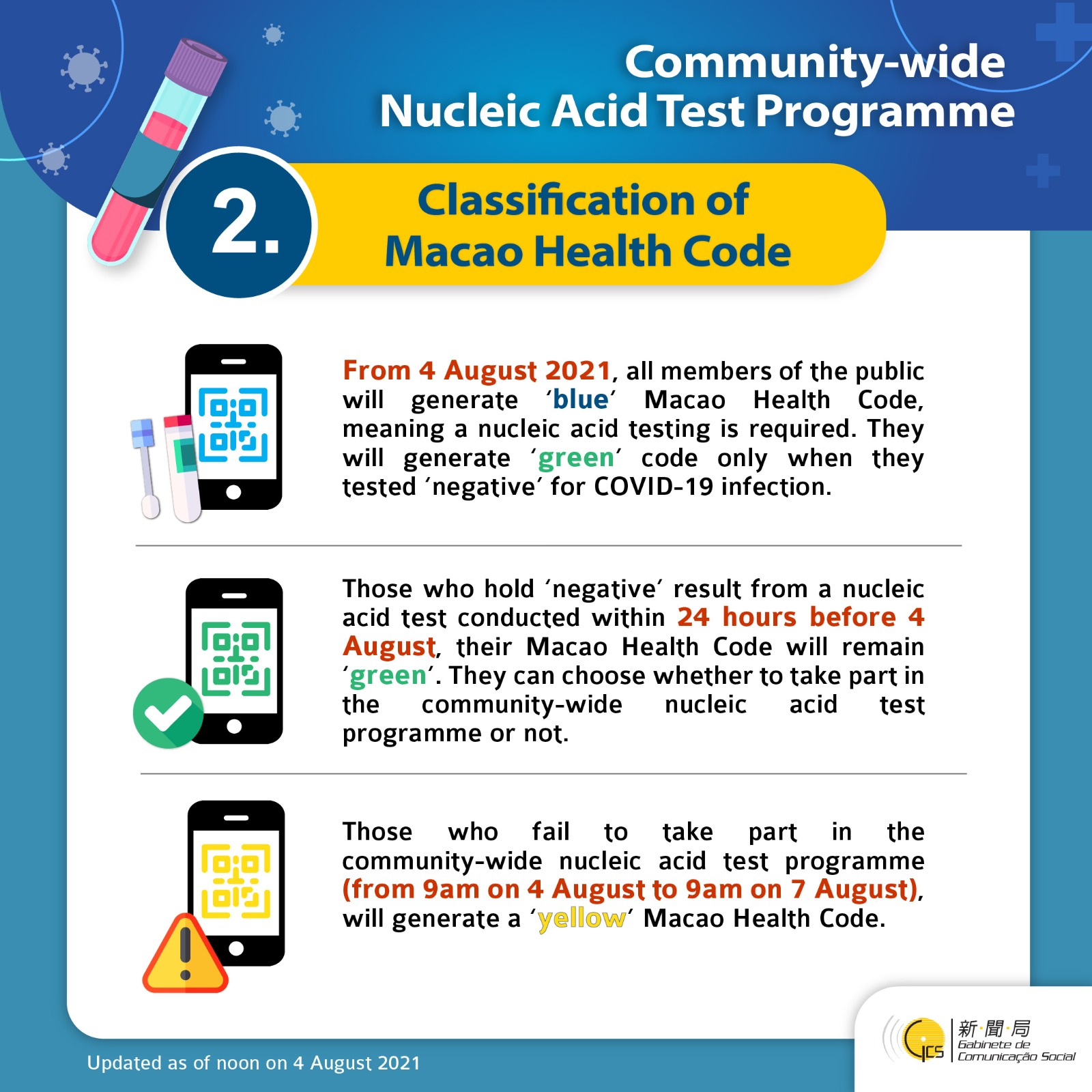 • Community-wide Nucleic Acid Test Programme- Classification of Macao Health Code