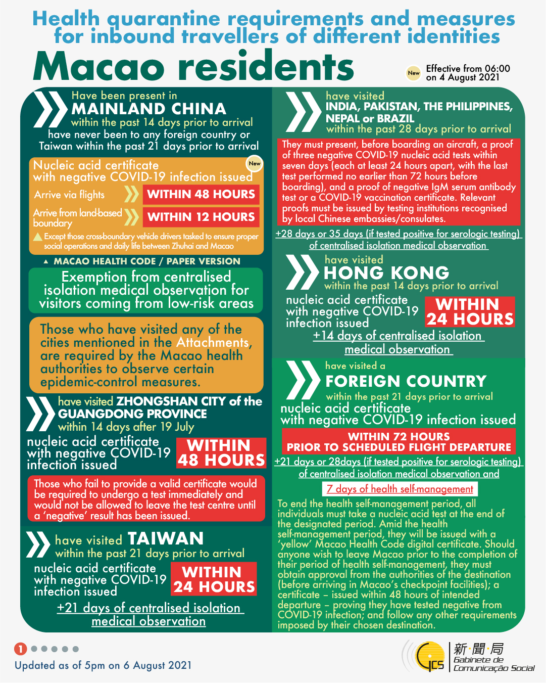 [infographic] 6 August 2021 health quarantine requirements and measures for inbound travellers