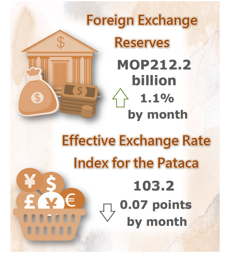 The trade-weighted effective exchange rate index for the pataca dropped 0.07 points month-to-month and 2.48 points year-on-year to 103.2 in August 2021, implying that overall speaking, the exchange rate of the pataca declined against the currencies of Macao’s major trading partners.
