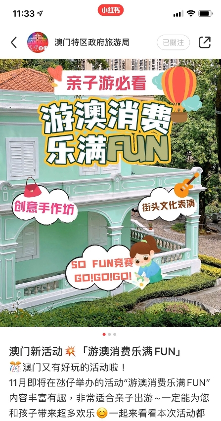 Macao Government Tourism Office (MGTO) has been devoting relentless promotional efforts to spotlight Macao as a safe and quality destination among Mainland residents via WeChat, Weibo, Xiaohongshu and Douyin. With the strong marketing endeavors, the number of visitors manifested an upward trend again these days. The number of visitors reached 30,512 last Friday (29 October) and close to 30,000 (29,990) on Saturday (30 October).