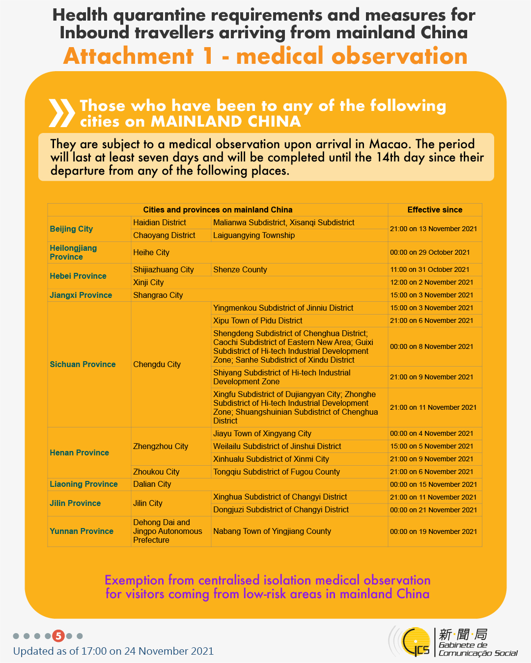 [infographic] 24 November 2021 health quarantine requirements and measures for inbound travellers of different identities.