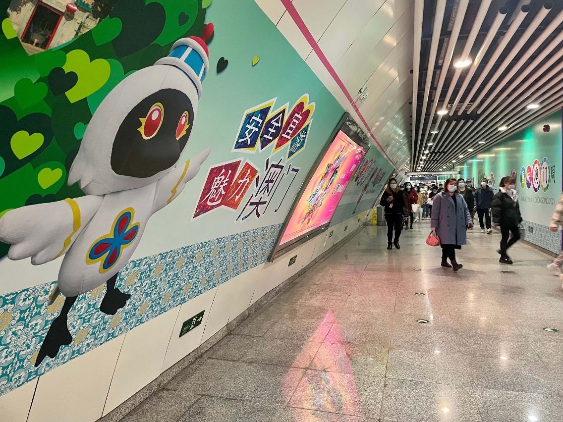 Transit marketing is an itinerant way to advertise and reach a wide audience. Advertisements are hence placed upon numerous buses to promote the “Macao Week in Chongqing”, “Macao Light Festival 2021 – Travellers from Mars” and “Light up Macao Drone Gala”. The bus routes cover Jiefangbei Central Business District, other major business districts, avenues and tourist attractions. Lightbox advertisements are also placed at MTR stations.