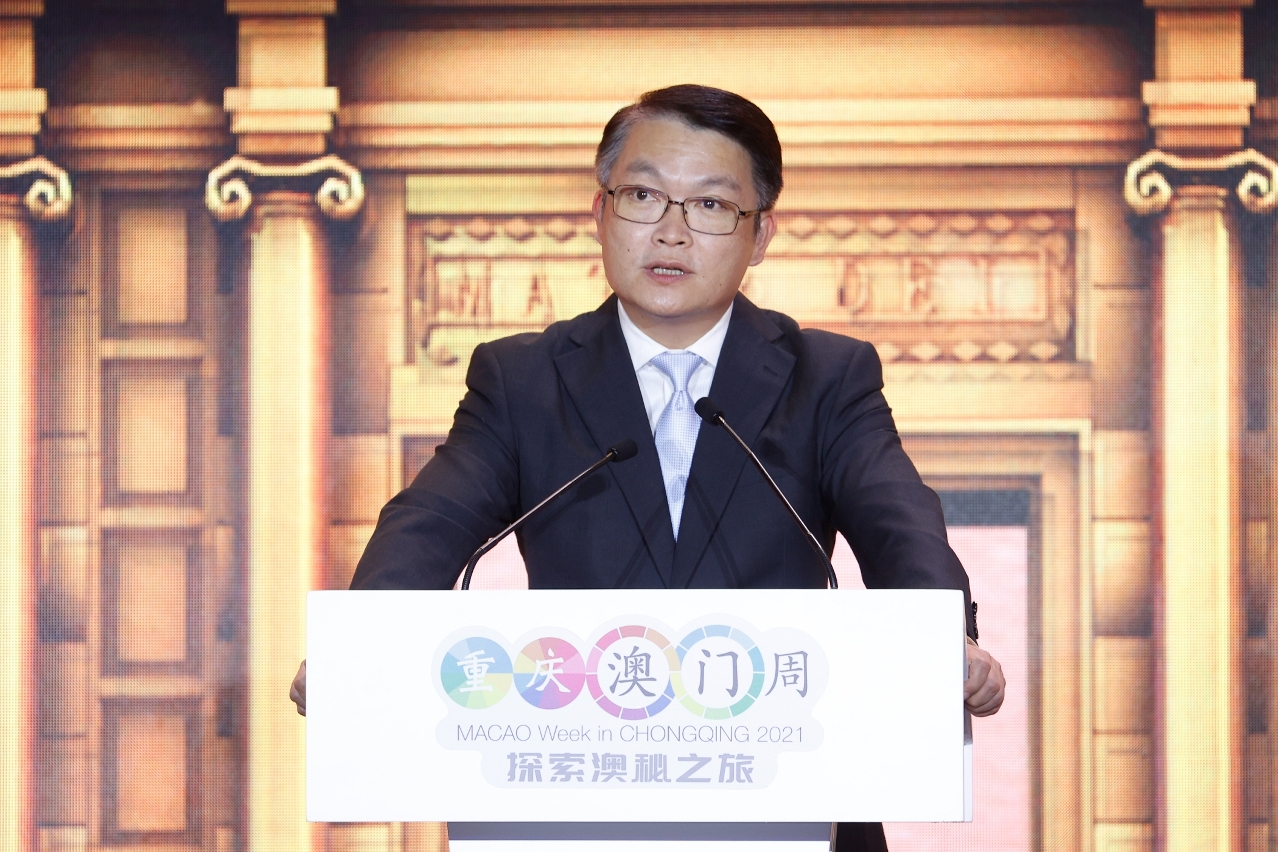 Vice Mayor of the People’s Government of Chongqing Municipality, Cai Yunge, remarked in his speech that from Yu’ao Bridge which spans across Jialing River, to various initiatives of mutual cooperation put into implementation in different fields, Chongqing and Macao have forged closer collaboration and yielded effective results in different areas including trade and commerce, transportation, Chinese medicine, culture, tourism, MICE, education, youth exchange and joint fight against the COVID-19 pandemic. Embracing the golden opportunity brought by the Macao Week in Chongqing 2021, Chongqing will take another step forward in exchange and cooperation with Macao, as both cities join hands to pay more mutual visits of officials, deepen cooperation and consensus, build the platform of trade and commerce, expand the spectrum of collaborative channels and enhance people-to-people exchange for closer friendship between the people of both cities. Chongqing will capitalize on the advantages and function of Macao as a commerce and trade cooperation platform between China and Portuguese-speaking countries to connect and forge new partnerships with Portuguese-speaking countries in trade and commerce, jointly expanding markets and creating platforms for opening up and mutual sharing. He believes that as the people of both cities join hand in hand in solidarity, Chongqing and Macao will march towards a brighter future for cooperation.