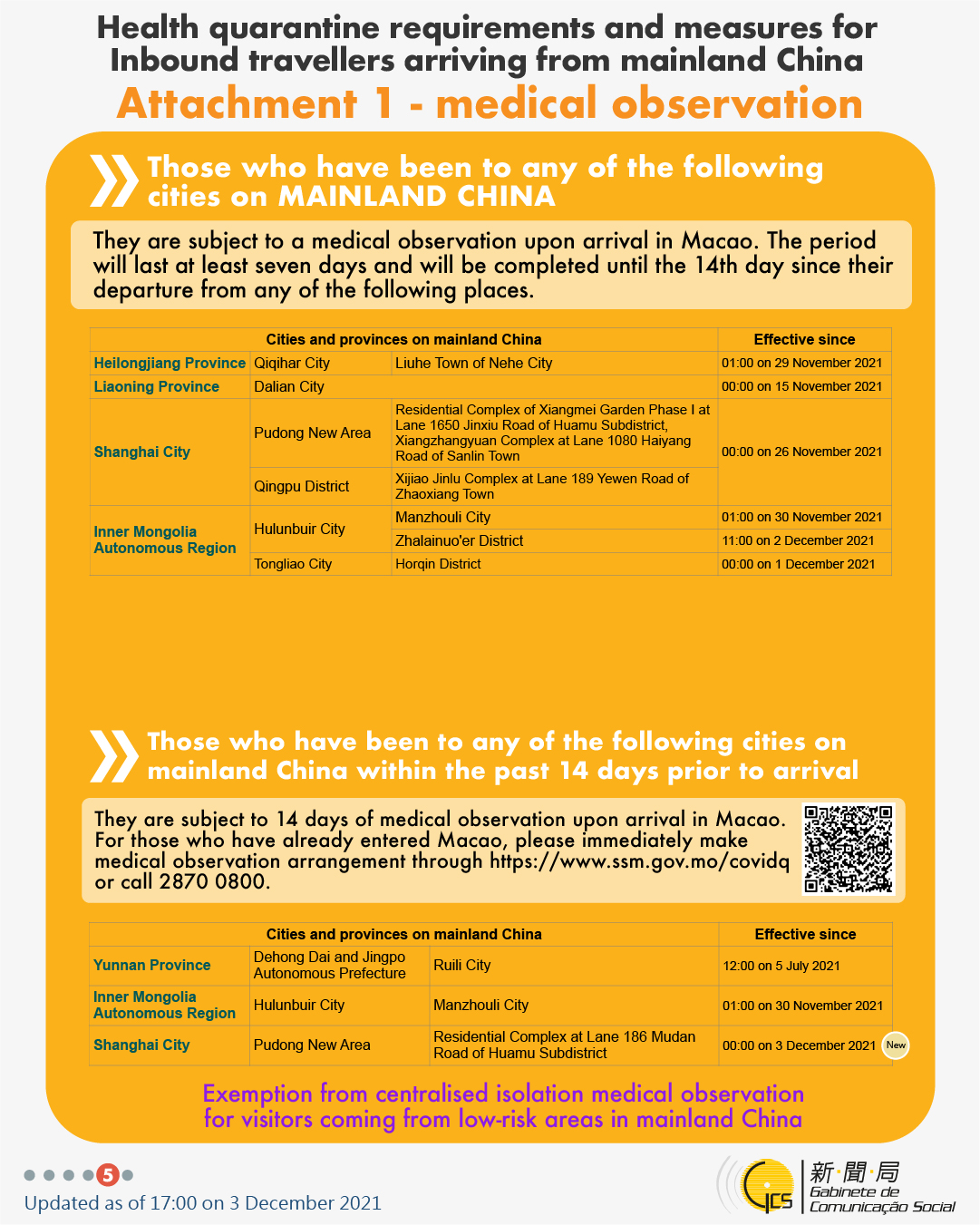 [infographic] 3 December 2021 health quarantine requirements and measures for inbound travellers of different identities.
