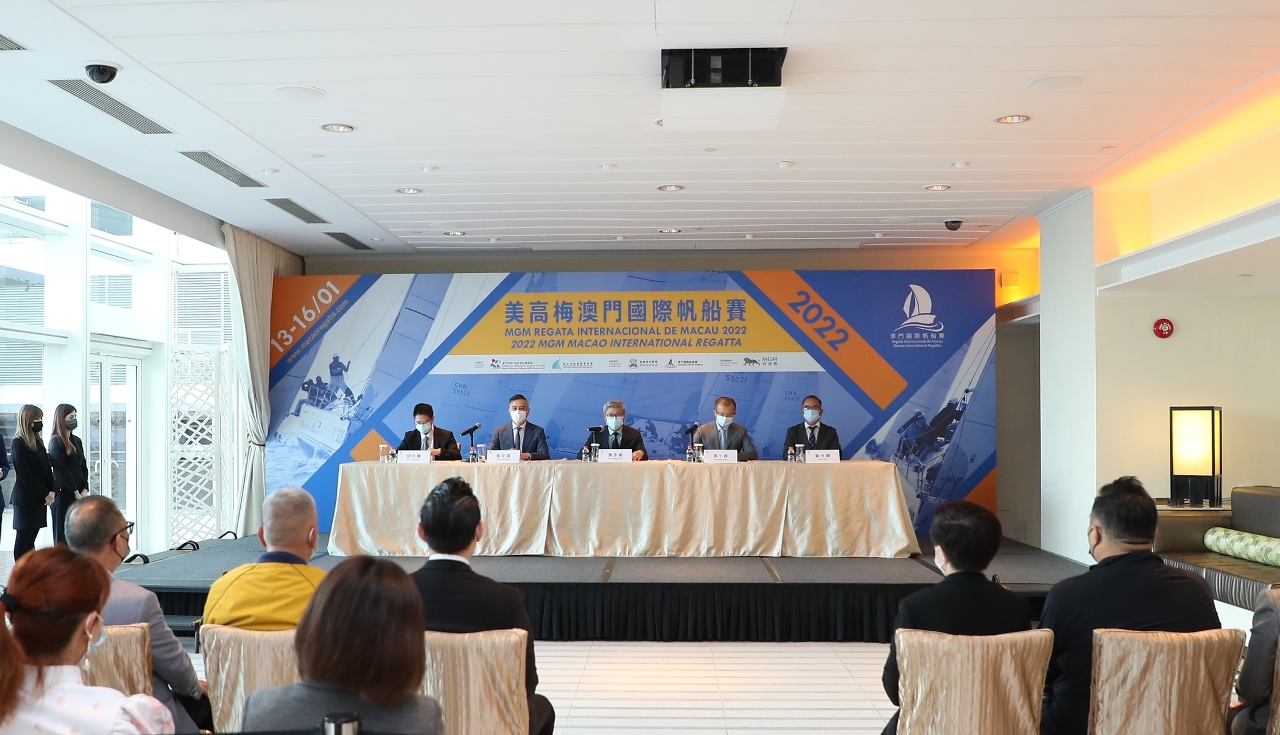 A press conference of the 2022 MGM Macao International Regatta was held today (10 December) at the MGM Macau to announce the details of the event. Guests attending the press conference included: Mr. Pun Weng Kun, President of the Sports Bureau; Mr. Ma Man Wai, President of the Ursa Major Sailing Event Management; Mr. Kenneth Feng, President, Chief Strategic and Financial Officer of MGM; Mr. Wu Chu Pang, Head of Maritime Activities Department of the Marine and Water Bureau; Mr. Brian Sou, Chairman of Macau Sailing Association; along with other guests and members of the media.