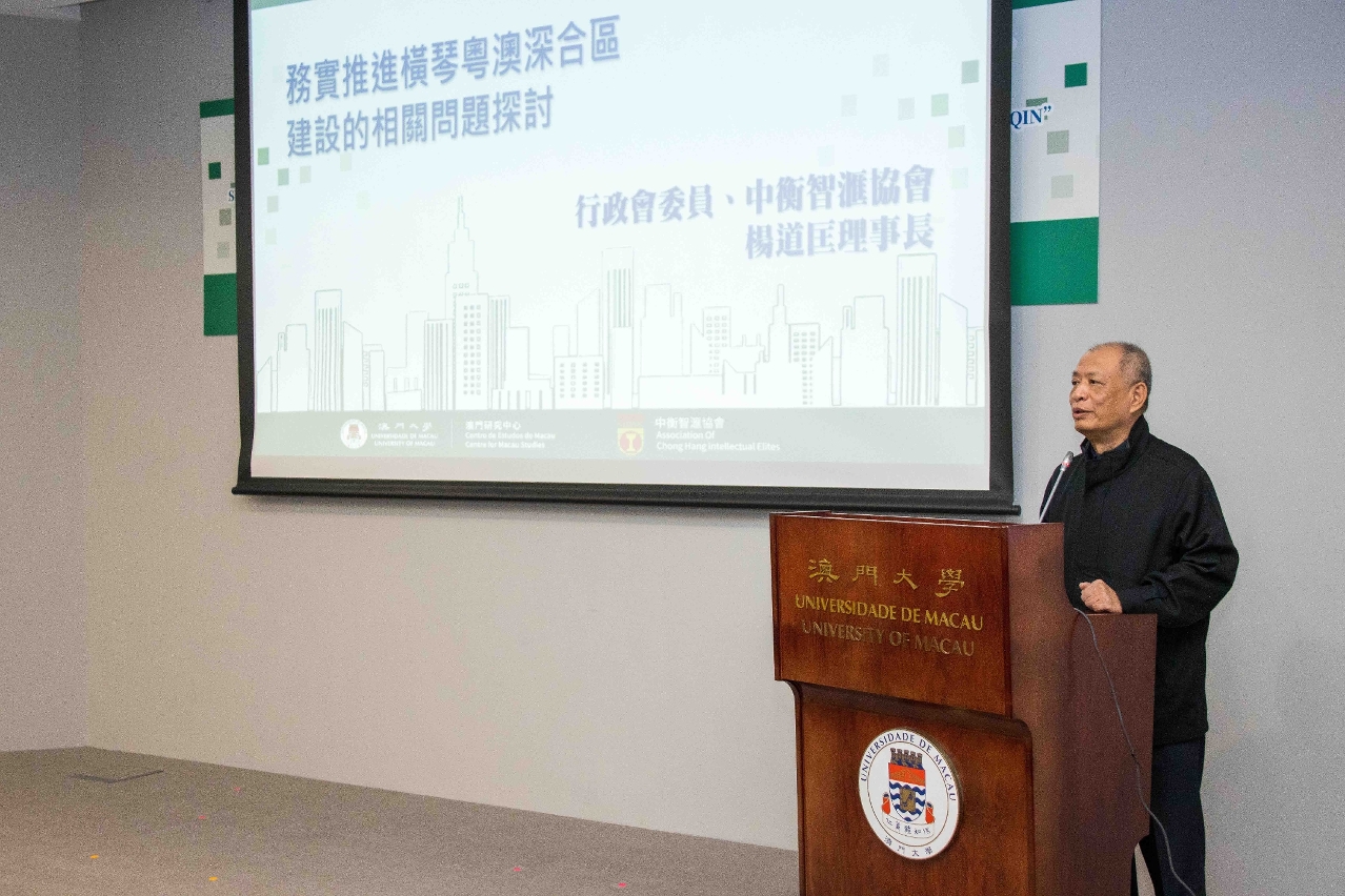 The University of Macau (UM) Centre for Macau Studies (CMS) today (14 November) held a seminar titled ‘Construction and Development of the Guangdong-Macao In-Depth Cooperation Zone’. Experts and scholars attended the seminar to discuss the construction and development of the Guangdong-Macao In-Depth Cooperation Zone (Cooperation Zone) in Hengqin from various perspectives, including system establishment, policy planning, talent development, and public administration.