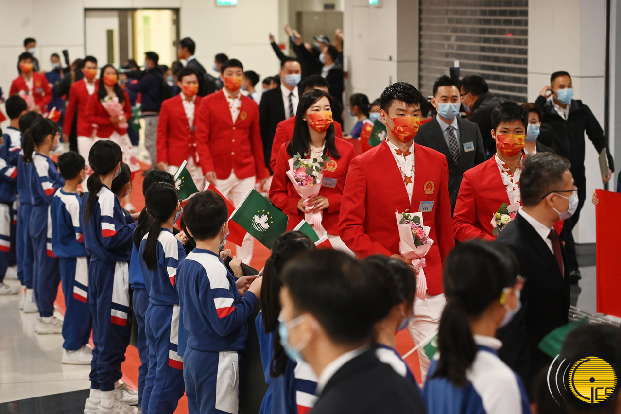 The Macao Special Administrative Region (MSAR) Government held a ceremony to welcome the delegation. The group was led by Deputy Director of the General Administration of Sport of China, Ms Yang Ning. Upon arrival at the Macao Port serving the Hong Kong-Zhuhai-Macao Bridge, the national athletes and coaches were greeted by the President of the Sports Bureau of Macao, Mr Pun Weng Kun, and Deputy Director of Department of Publicity and Culture of the Liaison Office of the Central People’s Government in the MSAR, Mr Yin Rutao, along with approximately 100 local students.