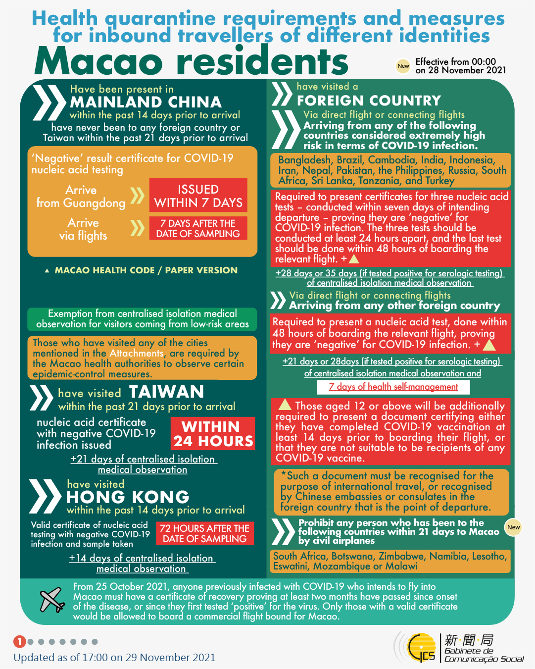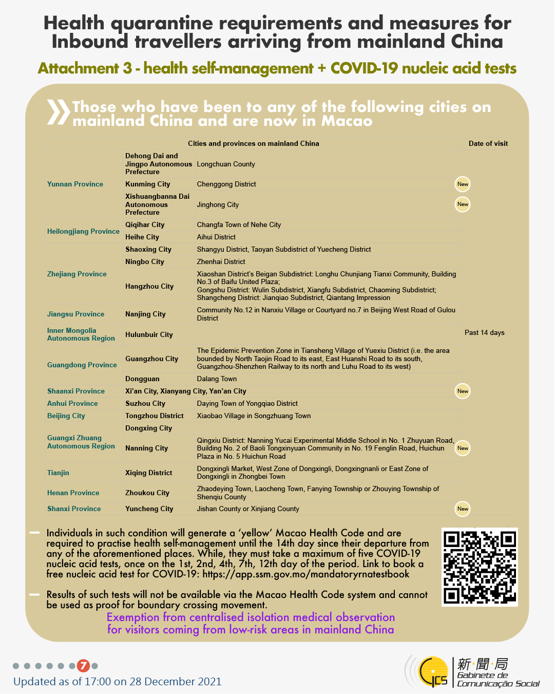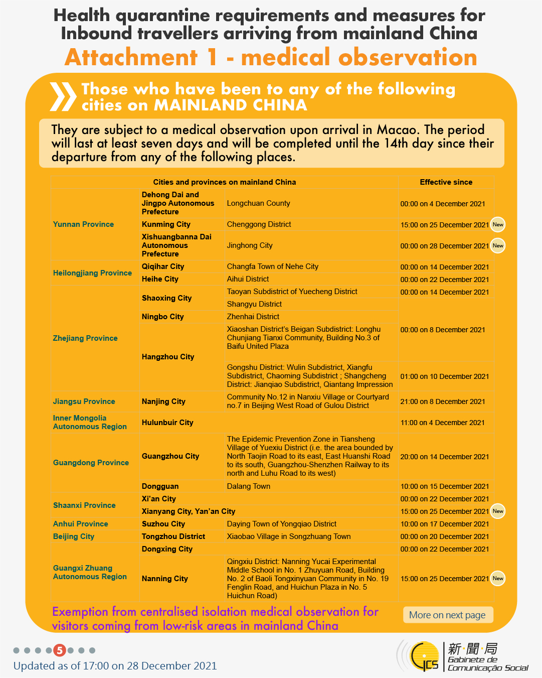 [infographic] 28 December 2021 health quarantine requirements and measures for inbound travellers of different identities.