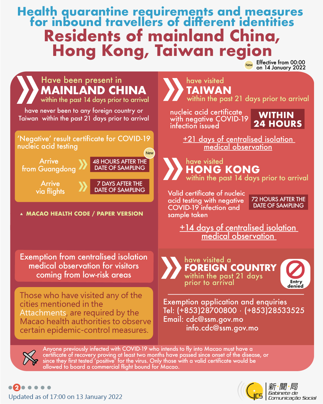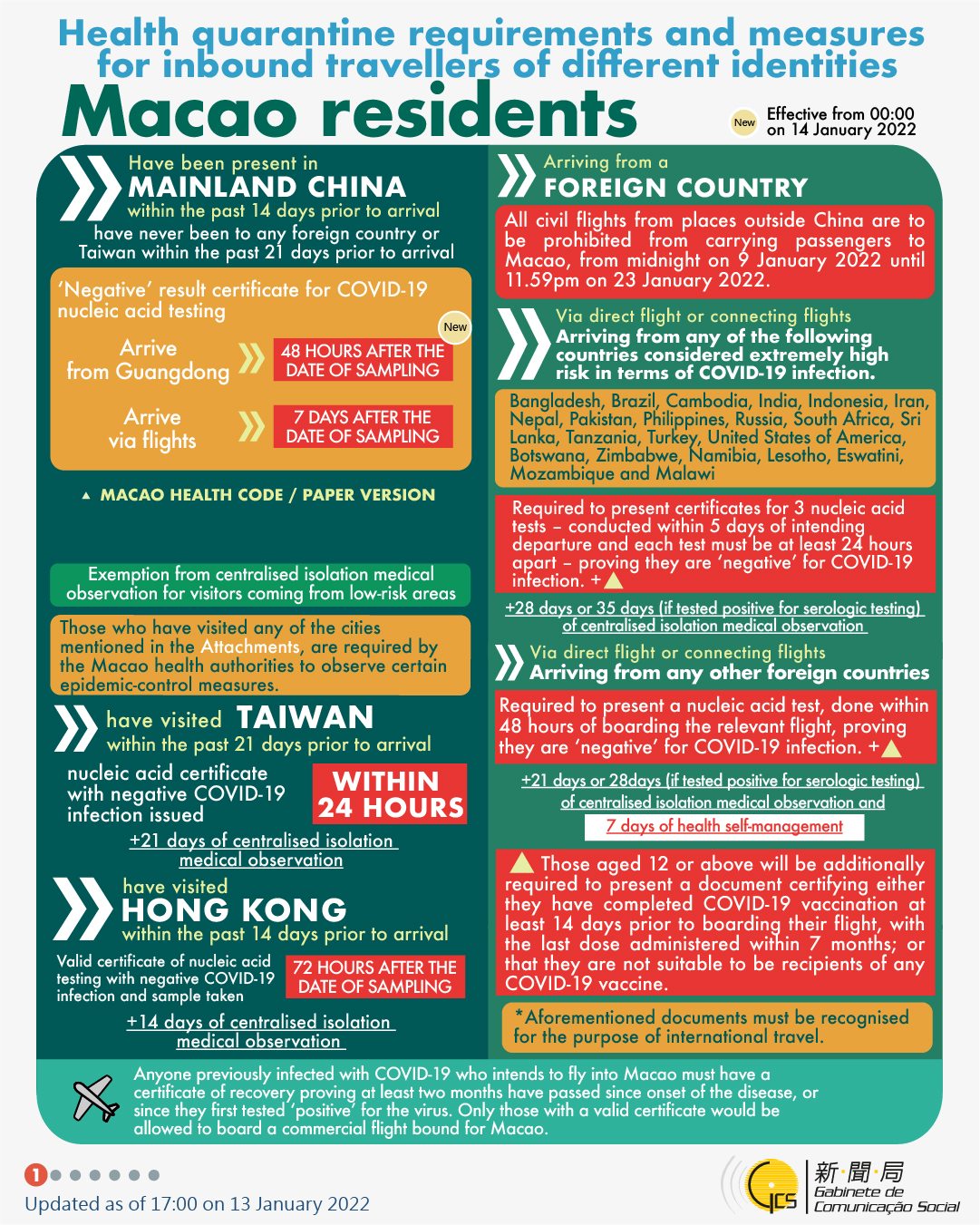 [infographic] 13 January 2022 health quarantine requirements and measures for inbound travellers of different identities.
