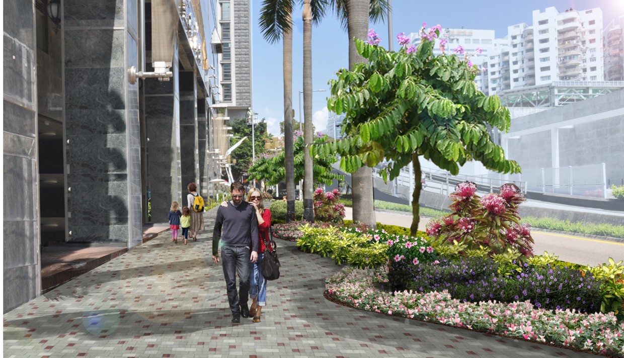 Furthermore, the area of green areas is increased and the quality is improved. The green area of pavements is increased by more than six times, expanding from the current 128 square metres to 860 square metres. The width of the green belt is also increased from 1 metre to 2.5 metres to enhance the separation of pedestrians and vehicles. Meanwhile, the number of plant species is increased from 9 to 17. Plants including Roystonea regia, Lagerstroemia speciose, Tabebuia chrysotricha, Cordyline fruticose, Codiaeum variegatum“ Van Oosterzeei”, Euphorbia leucocephala, Duranta repens“Variegata”, etc. are added to improve the ornamentation. As for the 123 existing trees, the vast majority are to be preserved in their original positions or transplanted in the same area. A total of 21 trees are affected by the construction works and will be transplanted and preserved in other places such as plant nurseries.