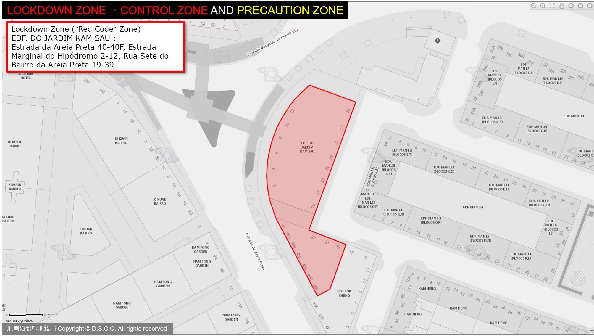 EDF. DO JARDIM KAM SAU : Estrada da Areia Preta 40-40F, Estrada Marginal do Hipódromo 2-12, Rua Sete do Bairro da Areia Preta 19-39 |