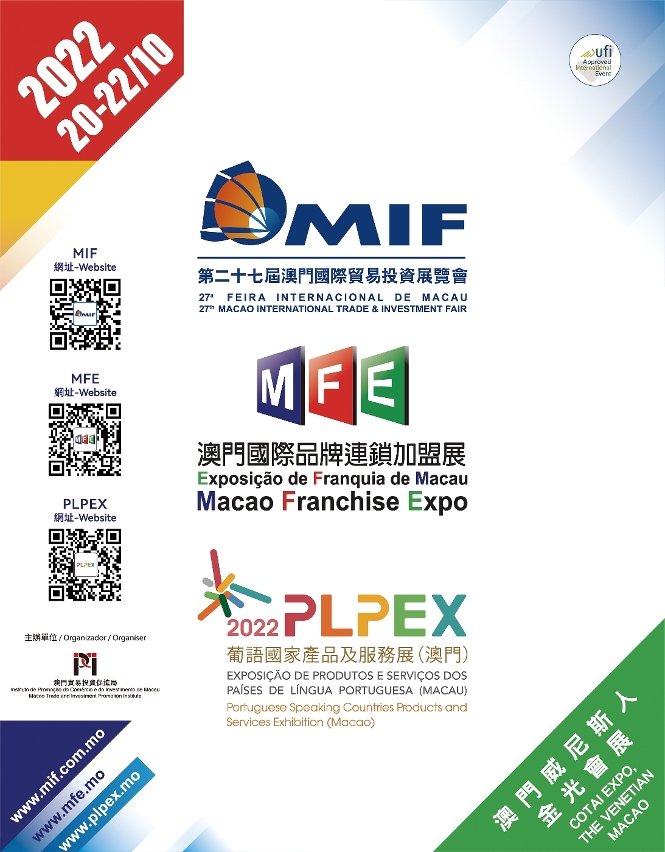 MICE events organised or co-organised by IPIM will take place in an orderly manner, including the 13th International Infrastructure Investment and Construction Forum (IIICF) from 28 to29 September, three major MICE events currently from 20 to 22 October, namely the 27th Macao International Trade and Investment Fair (MIF), Macao Franchise Expo (MFE) 2022, Portuguese Speaking Countries Products and Services Exhibition (PLPEX) 2022, Guangdong & Macao Branded Products Fair (GMBPF)” from 11 to 13 November, as well as 2022 Macao International Environmental Co-operation Forum & Exhibition (MICEF) from 9 to 11 December. These events aim to push forward the recovery of multiple industries in Macao, and working with Macao SMEs to explore business opportunities