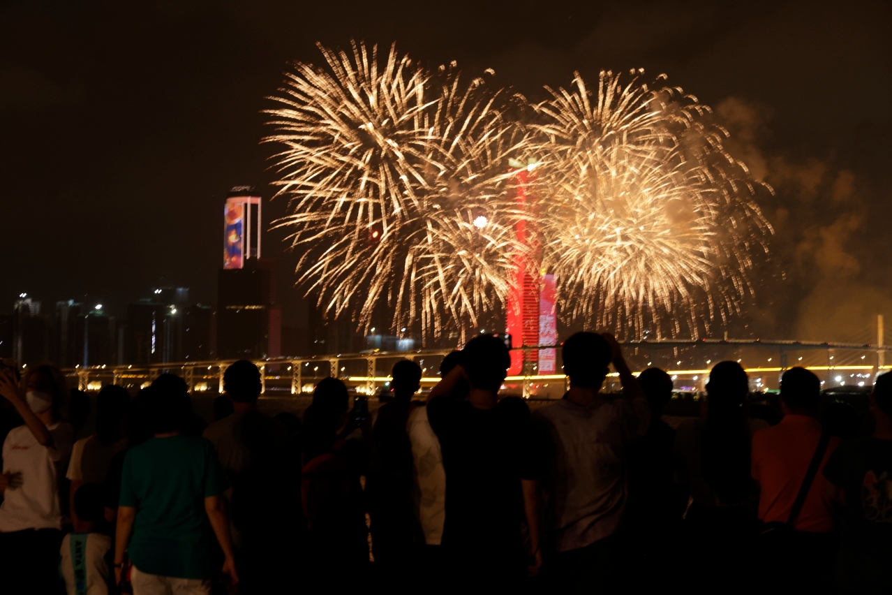 Organized by Macao Government Tourism Office (MGTO), the 2022 National Day Fireworks Celebration lit up the sky above the sea overlooked by Macau Tower tonight (1 October) in celebration of the 73rd Anniversary of the Founding of the People’s Republic of China, drawing lots of local and visiting spectators for the dazzling moments. Close to 80,000 viewers enjoyed the live stream of the National Day Fireworks Celebration on two popular social media in the Mainland, which enabled Mainland residents to experience the festive vibes in Macao.