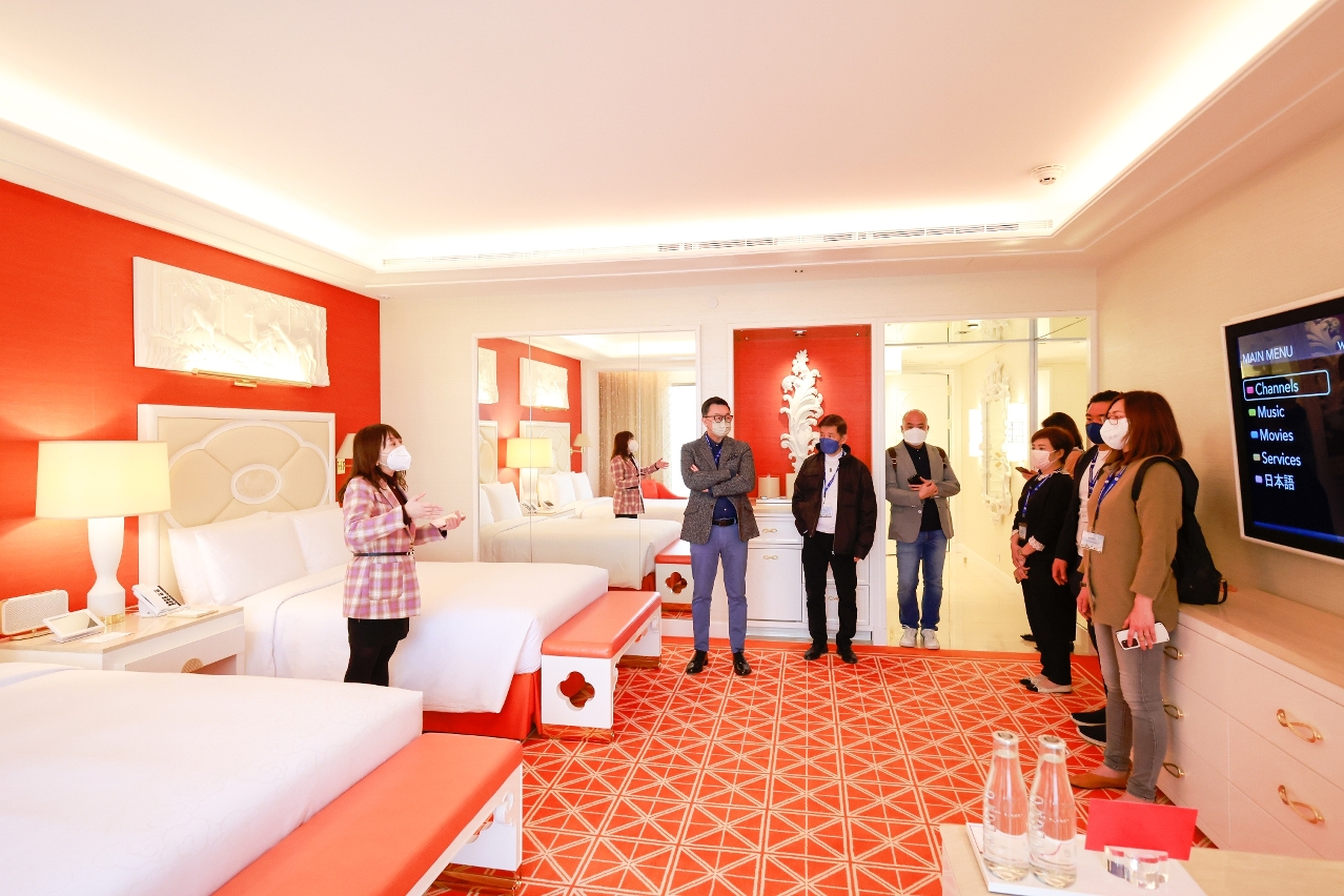 Divided into groups, the delegation visited the World Heritage Site – “The Historic Centre of Macao” and experienced the Macao Grand Prix Museum and “Visiting the Ruins of St. Paul’s in Space and Time - Exhibition of Virtual Reality at the Ruins of St. Paul’s”. They also paid a visit to MinM Plaza, Taipa Village as well as different large integrated resorts and their facilities including Grand Lisboa Palace Resort Macau, The Karl Lagerfeld, Wynn Palace, MGM Cotai, Morpheus, The Londoner Macao, Galaxy Macau, the immersive art space Artelli at the City of Dreams and teamLab SuperNature at The Venetian Macao, among others. Thanks to their visit to Macao tourism facilities and first-hand experience of Macao’s “tourism +” elements, the delegates can share Macao’s tourism resources and their trip experience with Hong Kong residents. They can also update their promotional content and sales of Macao’s latest tourism products to Hong Kongers.