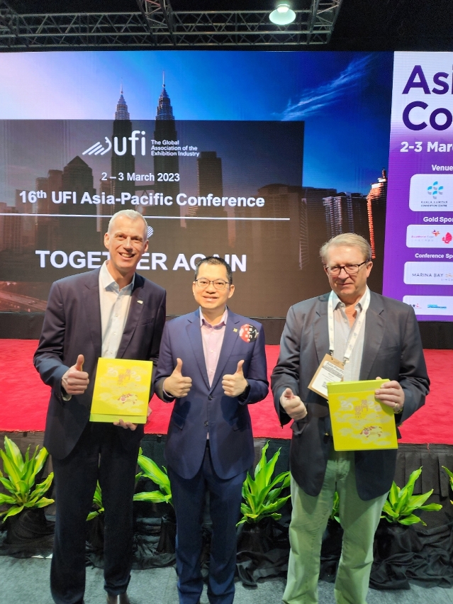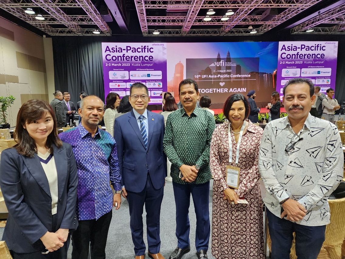 Acting President of Macao Trade and Investment Promotion Institute (IPIM) Vincent U led a delegation of the representatives from the MICE industry to attend the UFI Asia-Pacific Conference 2023 held in Kuala Lumpur from 2 to 3 March. During the conference, Vincent U met with Chief Executive Officer of Malaysia Convention & Exhibition Bureau (MyCEB) Abdul Khani Daud, UFI President Michael Duck and UFI Managing Director/CEO Kai Hattendorf to exchange information on the MICE industry of Macao.