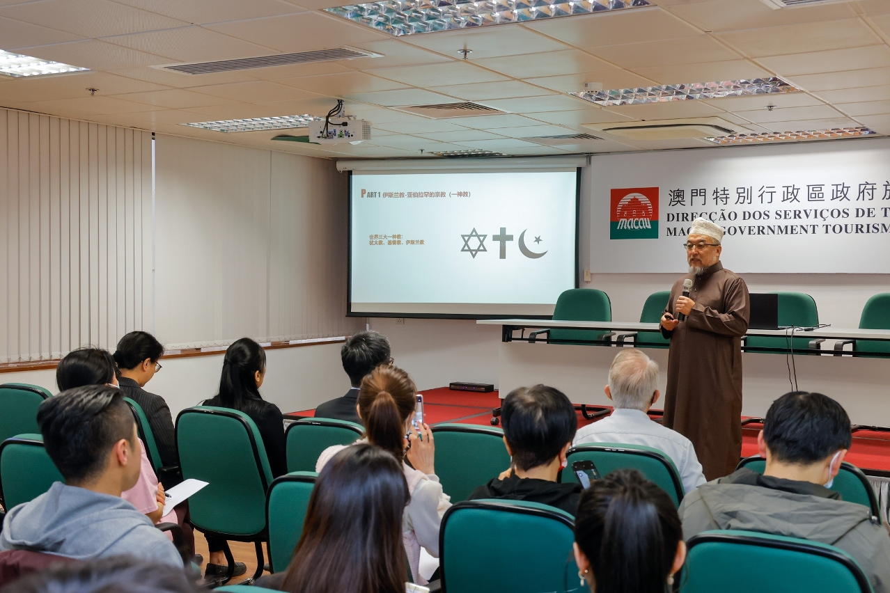 Imam of Islamic Association of Macau, Ding Shao Jie, is the key speaker at the workshop. Employees of hotels, catering establishments and travel agencies as well as tour guides in the work force keenly participated in the workshop, attended also by Deputy Director of MGTO, Cheng Wai Tong. Many signed up for the workshop and filled the quota before the deadline.