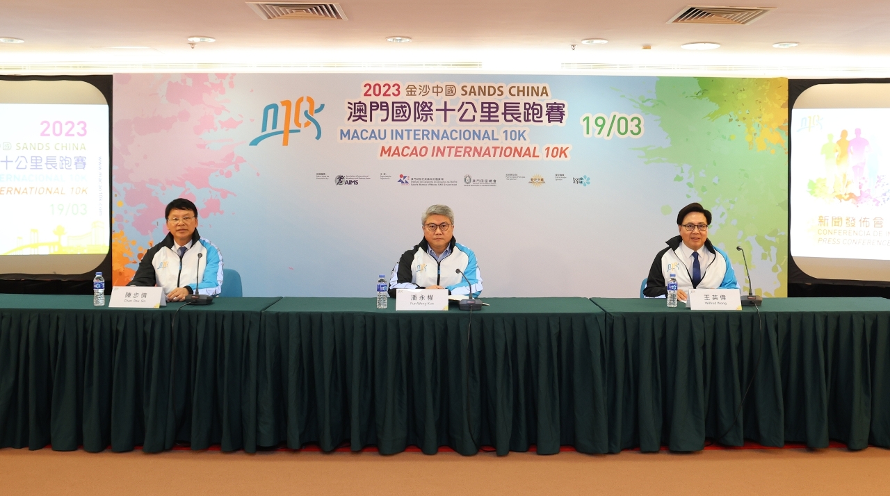 The 2023 Sands China Macao International 10K, jointly organized by the Sports Bureau and the General Association of Athletics of Macau, and title-sponsored by Sands China Ltd., will be held on 19 March (Sunday). The Organizing Committee held a pre-event press conference today (16 March) to introduce the competition details and relevant information.