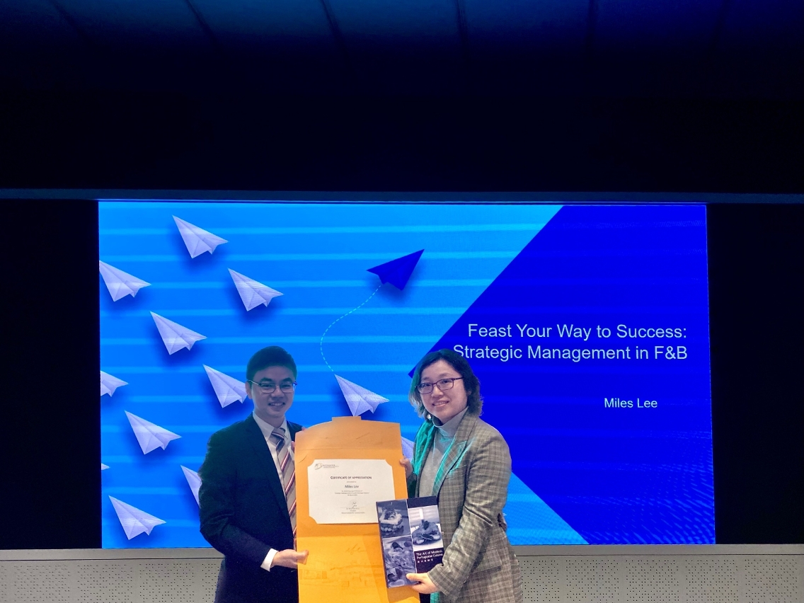 This lecture attracted many students who are interested in catering, F&B and gastronomy industries. Students in attendance expressed that the lecture had been a fruitful experience, stimulating them to advance their understanding of strategic management by combining theory and practice. They were also impressed deeply by Mr. Lee’s insightful, humorous, and professional talk. Mr. Lee shared his comprehension and experiences and also explored the future path of integrating intelligent technology in this sector. After the lecture, the students actively asked questions and communicated with Mr. Lee for some related contemporary issues.