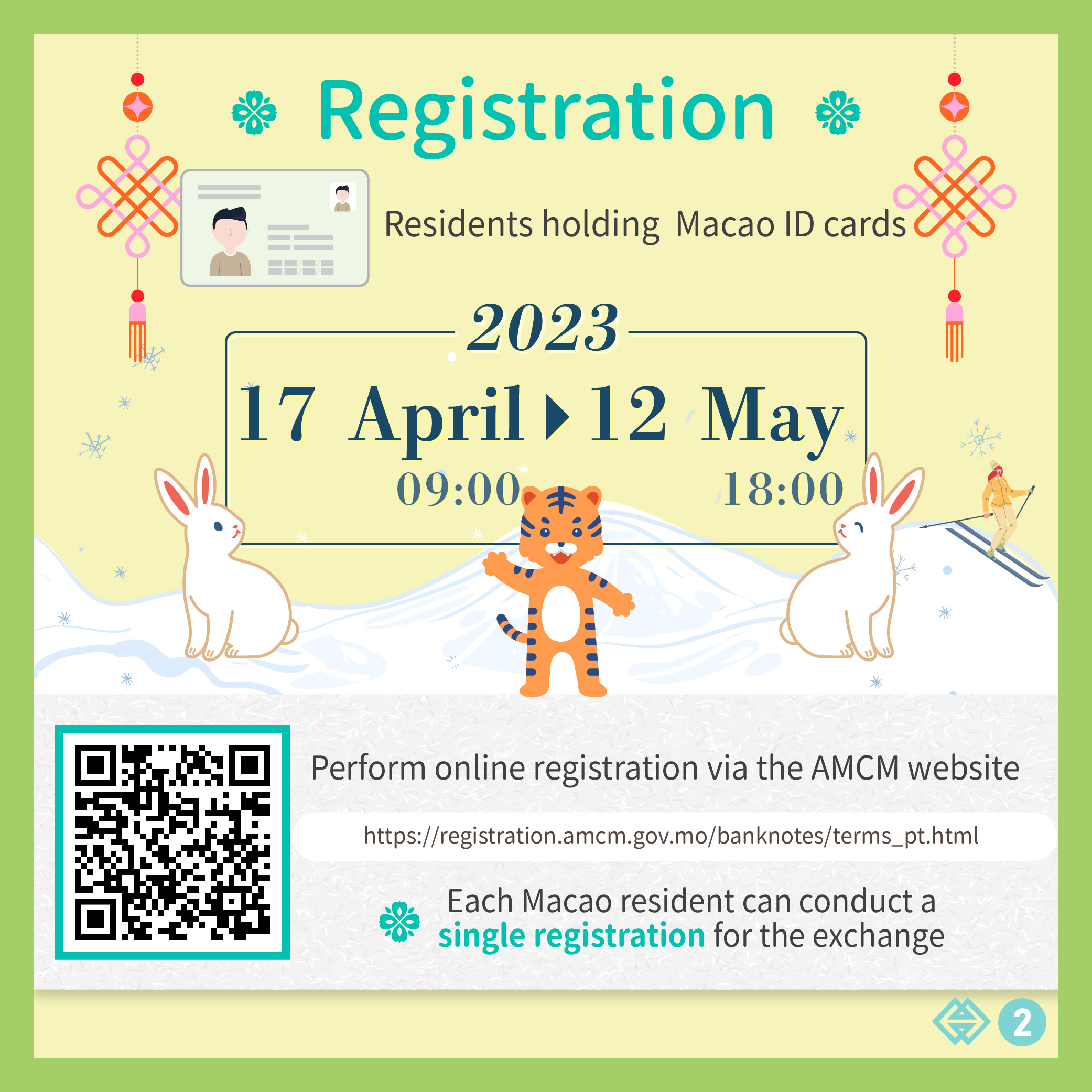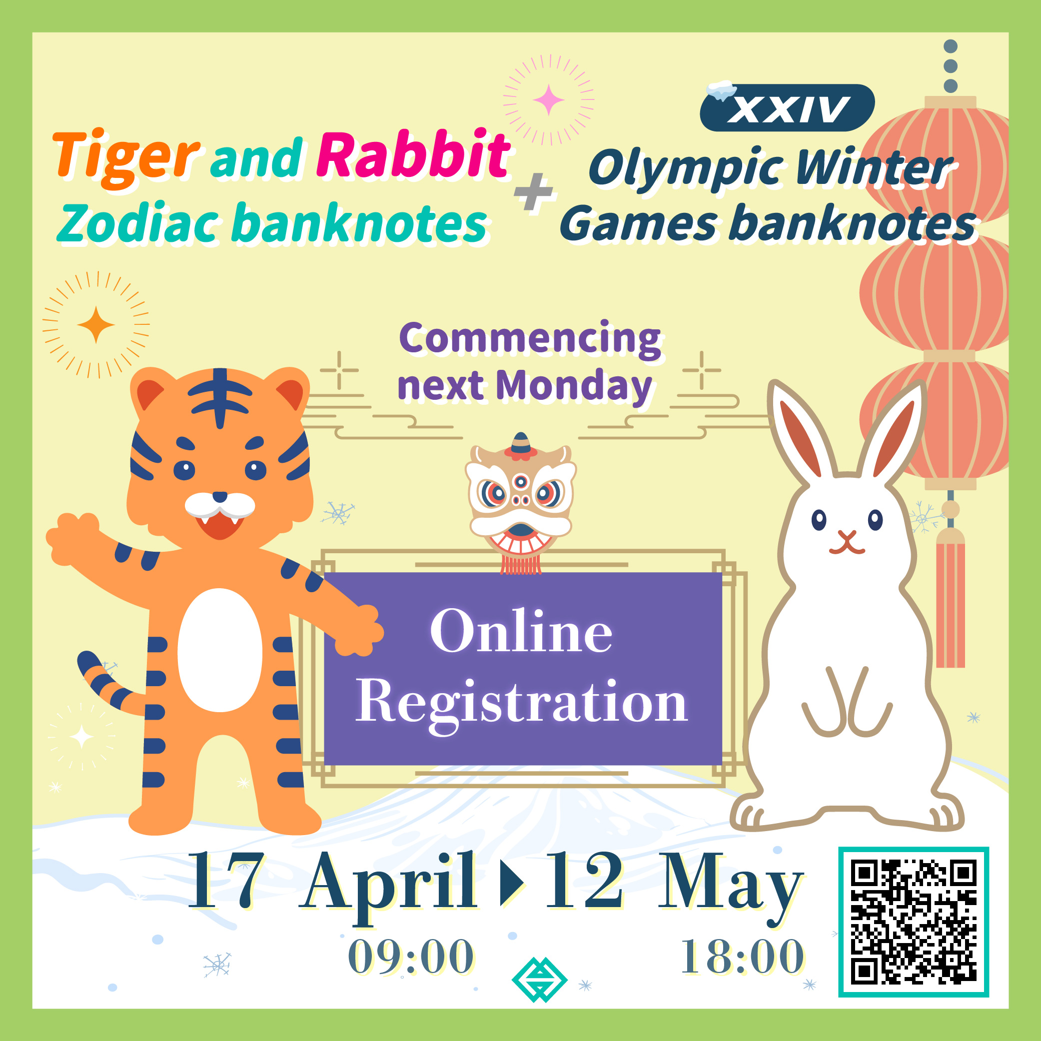 The joint online registration for the exchange of the Tiger and Rabbit Zodiac banknotes, together with the previously issued the XXIV Olympic Winter Games banknotes, will commence next Monday (17 April 2023).