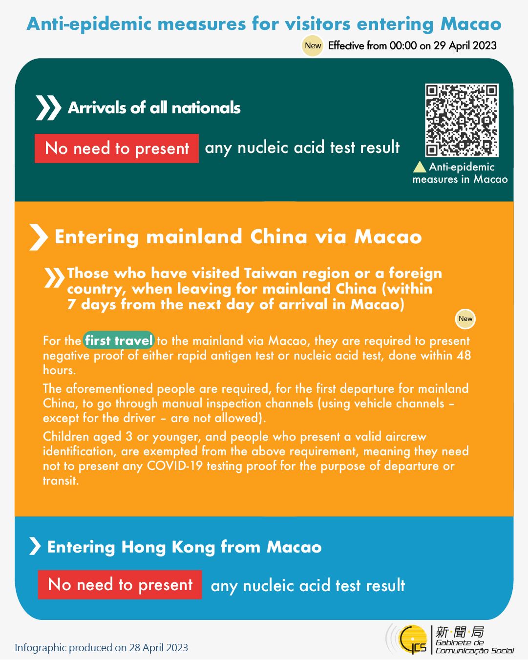[infographic] Anti-epidemic measures for visitors entering Macao (28 April 2023 )