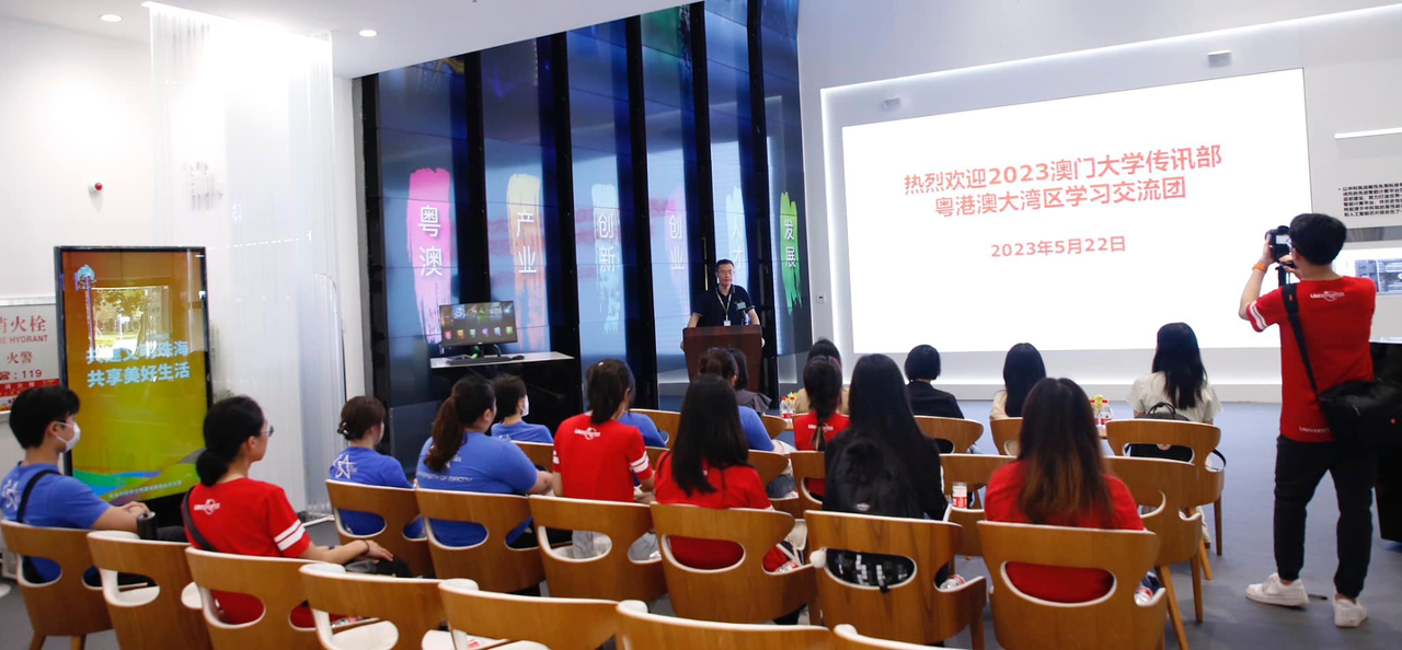 Led by Katrina Cheong, director of the Communications Office of UM, members of the delegation first visited Hengqin-Macao Youth Entrepreneurship Valley, where Wang Kun, deputy director of the industrial planning and research department for Zhuhai Da Heng Qin Development Co Ltd, presented the operation and development of the valley. The delegation also explored Zhuhai UM Science & Technology Research Institute to gain more insight into UM’s industry-academic collaboration projects in the GBA. In Guangzhou, Chen Weibin, an editorial board member of Southern Metropolis Daily and CEO of N Video, shared with the students how the company adjusted its content and format to keep up with the development of new media and gave helpful advice on conducting interviews and improving journalistic instincts.