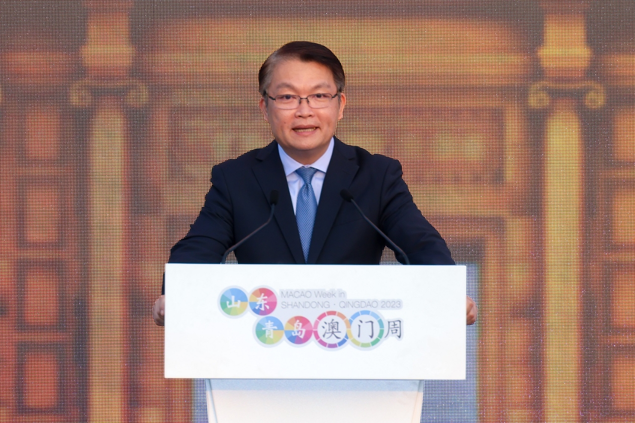 In his remarks, Secretary for Economy and Finance, Lei Wai Nong, stated that Qingdao has become the first city where the Macao Week series unfolds this year. The Macao Week in Shandong•Qingdao is the seventh event of its kind following the previous Macao Weeks held in Beijing, Hangzhou, Nanjing, Shanghai, Chengdu and Chongqing, making this occasion especially meaningful. Years ago, Shandong and Macao have unlocked the door to friendship, carrying on exchange and cooperation in different areas ranging from economy and commerce, culture, human resources, MICE, water sports to Chinese medicine. The tourism offices of Shandong and Macao are both members of the China Maritime Silk Road Tourism Promotion Alliance, while Macao and Qingdao are member cities of the UNESCO Creative Cities Network, in the field of gastronomy and film respectively. He hopes that with the Macao Week in Shandong•Qingdao unveiled, both places can reach a new pinnacle of progress in terms of cooperation and development in different sectors.