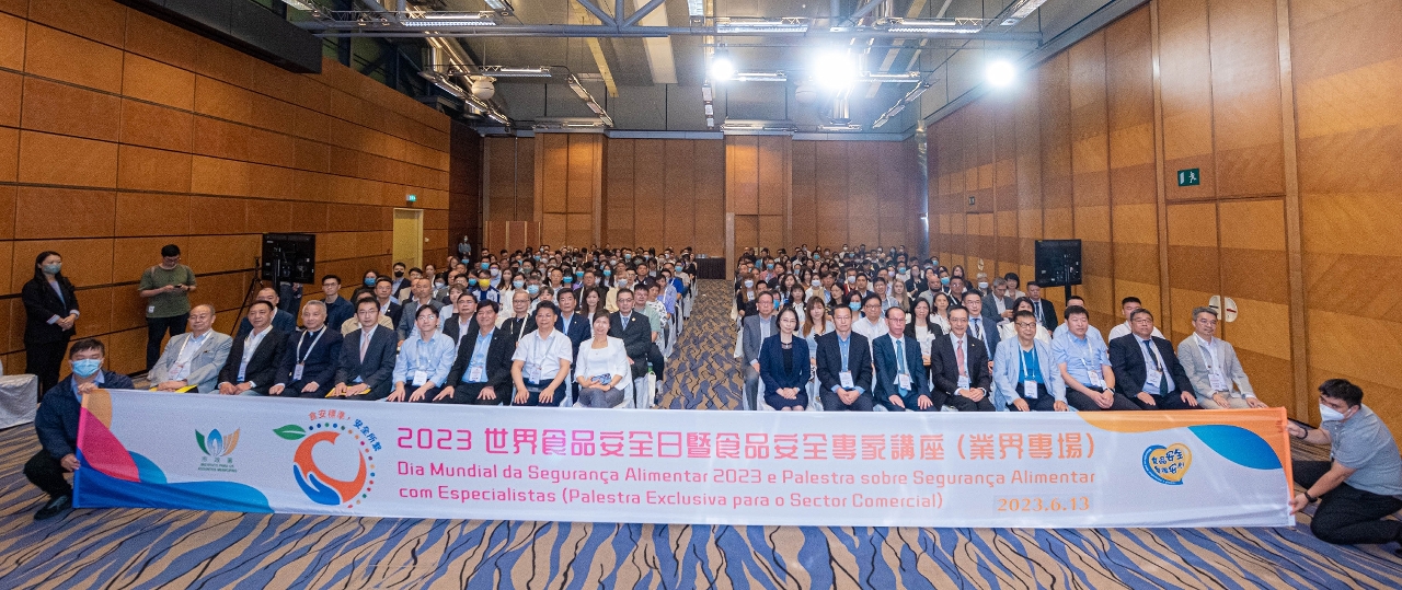 In order to promote technical exchanges and cooperative development of Macao, the Mainland and Hong Kong in the area of food safety, the Municipal Affairs Bureau (IAM) held the “Experts Talks on 2023 World Food Safety Day and Food Safety” on 13 June, inviting representatives from food safety supervision authorities of the Mainland, Hong Kong and Macao to deliver keynote speeches on topics such as the application of food safety technology, the implementation of food safety standards, and the development of the food markets in the Greater Bay Area, and to have in-depth exchange of views with other attendants. More than 400 representatives from the local food sector, related associations, academic institutions and government departments attended the event.