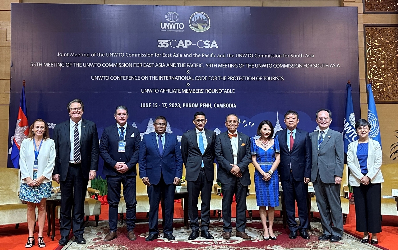 The World Tourism Organization (UNWTO) convened the “35th Joint Meeting of the UNWTO Commission for East Asia and the Pacific and the UNWTO Commission for South Asia” and the “UNWTO Conference on the International Code for the Protection of Tourists” in Phnom Penh, Cambodia from 15 – 17 June. Director of Macao Government Tourism Office (MGTO), Maria Helena de Senna Fernandes, attended the meetings and related activities.
