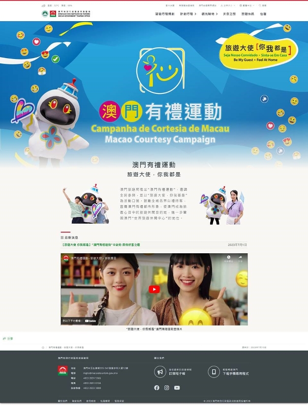 The themed website of the Campaign is launched. Residents and visitors can log into the website: https://www.macaotourism.gov.mo/en/article/promotion/macao-courtesy for related information.