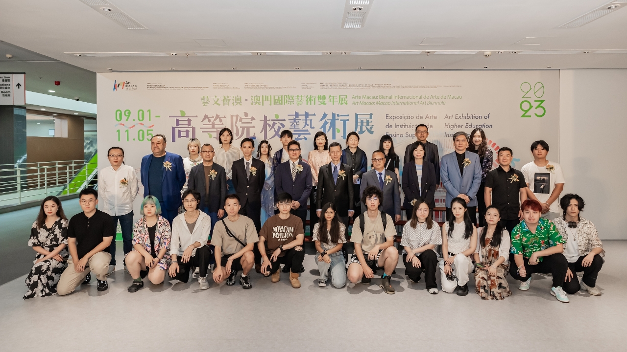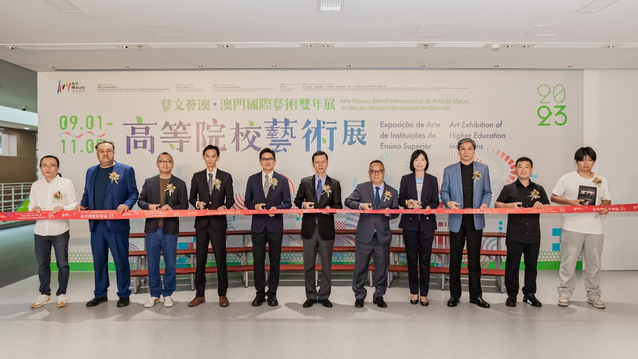 Organised by the Cultural Affairs Bureau (IC), co-organised by the Education and Youth Development Bureau, and with the support of the University of Macau, the Art Exhibition of Higher Education Institutions, featured in the “Art Macao: Macao International Art Biennale 2023”, was inaugurated on 1 September, at the Museum of Art of the University of Macau. The opening ceremony was officiated by the Deputy Director of the Department of Publicity and Culture of the Liaison Office of the Central People's Government in the Macao SAR, Yin Rutao; the Vice President of the Cultural Affairs Bureau, Cheang Kai Meng; the Rector of the University of Macau, Prof. Yonghua Song; Head of the Department of Tertiary Education of the Education and Youth Development Bureau, Carlos Roberto Xavier; the Vice-Rector of the Macao Polytechnic University, Prof. Lei Ngan Lin; the Director of the Department of International Cooperation and Exchange of the Central Academy of Fine Arts and Director of the Department of Hong Kong, Macao and Taiwan Affairs, Wang Chuan; the Dean of the Faculty of Humanities and Arts of the Macau University of Science and Technology, Prof. Zhang Zhiqing; the Head of the Department of Media, Art and Technology of the University of Saint Joseph Macau, Prof. José Simões; the Director of Creative Research Department of the Sichuan Fine Arts Institute, Prof. Wang Chaogang; the Associate Professor of Department of Experimental Art of the Guangzhou Academy of Fine Arts, Prof. Deng Biwen; and the Representative of the China Academy of Art, artist Qi Wenlong.