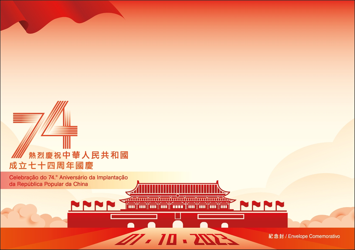 To celebrate the 74th Anniversary of the Establishment of the People’s Republic of China, Macao Post and Telecommunications Bureau announces that a Temporary Post Counter will be set up at the Philatelic Shop of General Post Office, from 09:00 to 14:00 on 1st October 2023 to provide the commemorative postmark cancellation service for the “Celebration of the 74th Anniversary of the Establishment of the People’s Republic of China”.