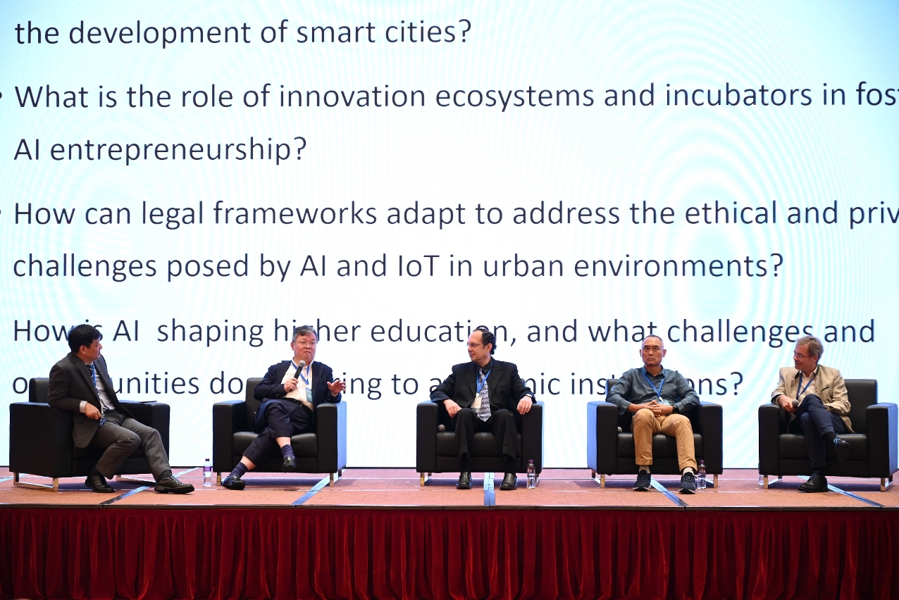 Keynote speakers at the conference included Shen Xuemin, professor at the University of Waterloo; Tarek Abdelzaher, chair professor at the University of Illinois Urbana-Champaign; Mohammad Shahidehpour, university distinguished professor at the Illinois Institute of Technology; Xiong Hui, chair professor at Rutgers University; and Zhang Limin, head and chair professor at The Hong Kong University of Science and Technology. In addition, Xu Cheng-Zhong, dean of UM’s Faculty of Science and Technology and chair professor of the State Key Laboratory of Internet of Things for Smart City, chaired the panel discussion titled ‘AI and the Urban Renaissance’. During the panel discussion, Guo Yike, provost and chair professor at The Hong Kong University of Science and Technology; Tarek Abdelzaher; Yang Qiang, chief artificial intelligence officer of WeBank; and Rostam J. Neuwirth, professor in UM’s Faculty of Law, discussed how artificial intelligence can promote the development of urban intelligence from various aspects. Moreover, more than 60 scholars from different research institutes give talks to share their latest achievements.