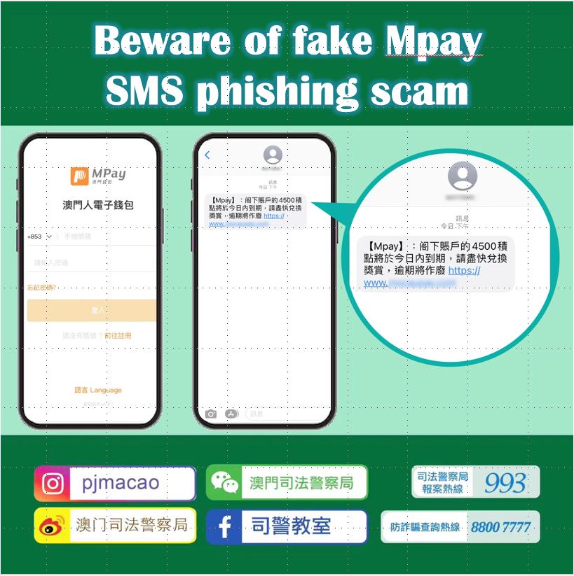 This year, the Judiciary Police (PJ) has received many complaints from the public pertinent to phishing SMS scams. In response, PJ released multiple Police Information Circulars, advising residents to stay vigilant against bogus SMS allegedly from telecommunication apps, shopping platforms, payment apps, etc. On the 24th of October 2023, the Bureau issued another circular warning the public about “phony MPay phishing SMS scam.” Unfortunately, between the 25th of October and the 3rd of November, 11 residents were victimized by the abovementioned fraud and incurred a loss of close to MOP$80,000.