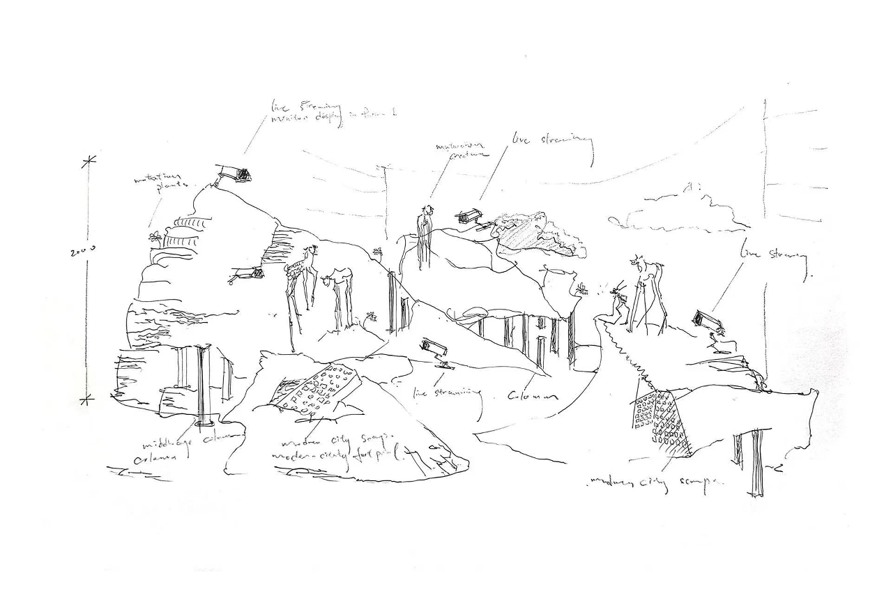 The selected proposal was inspired by the famous novel “Invisible Cities” by Italian writer Italo Calvino and was highly acclaimed by members of the jury for expressing concern over the development of human civilisation through an impressive desolate ambience, which reflects the intense anxiety of the era, showcases brilliant imagination, vision and originality, and echoes the theme of this edition of the biennale “Foreigners Everywhere”.
