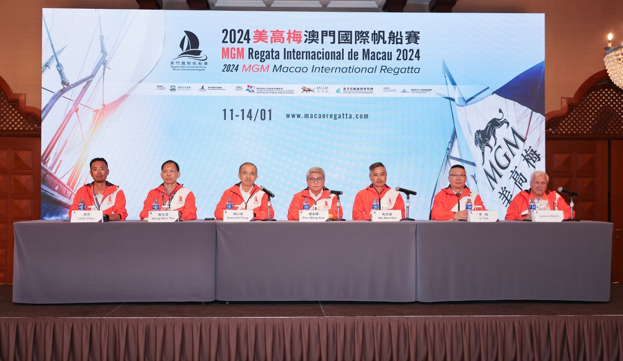 A press conference was held today (10 January) at Artyzen Grand Lapa Macau to introduce the details of the event. The guests in attendance included: Pun Weng Kun, President of the Sports Bureau; Kenneth Feng, President and Executive Director of MGM China Holdings Limited; Ma Man Wai, President of the Ursa Major Sailing; Wong Man Tou, Head of Maritime Activities Department of the Marine and Water Bureau; Robert Li, Vice-Chairman of Macau Sailing Association; Zhou Liang, Principle Race Officer; Lorenz Walch, Chairman of the Jury; and members of the Sports Committee.