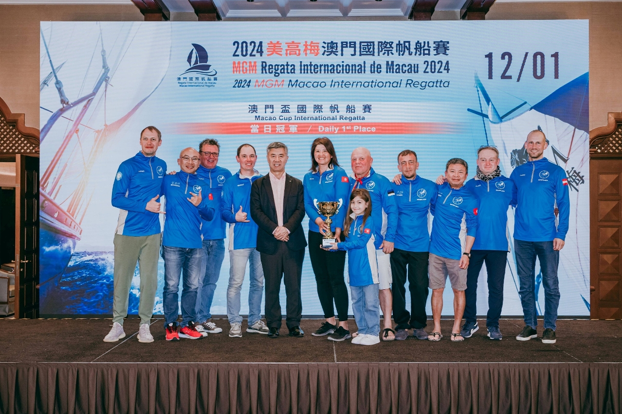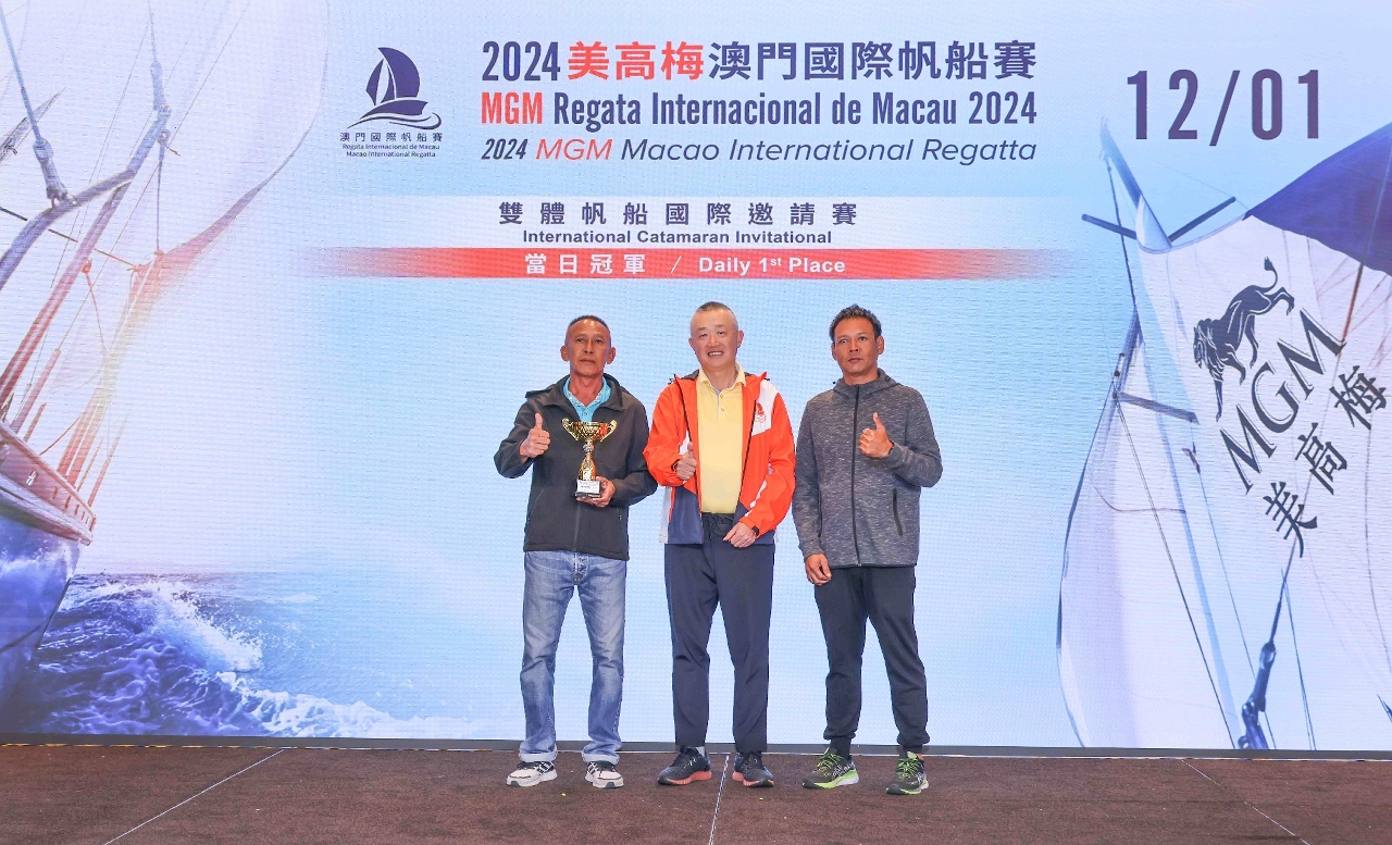 The organizers held a Daily Awards presentation ceremony after the conclusion of today’s races. Guests in attendance included Pun Weng Kun, President of Sports Bureau; Sandy Ling, Assistant Vice President of Brand Marketing of MGM; Ma Man Wai, President of the Ursa Major Sailing Event Management; Li Quanhai, Chairman of World Sailing; and Reid Lee, representative of Ursa Major Sailing Event Management.
