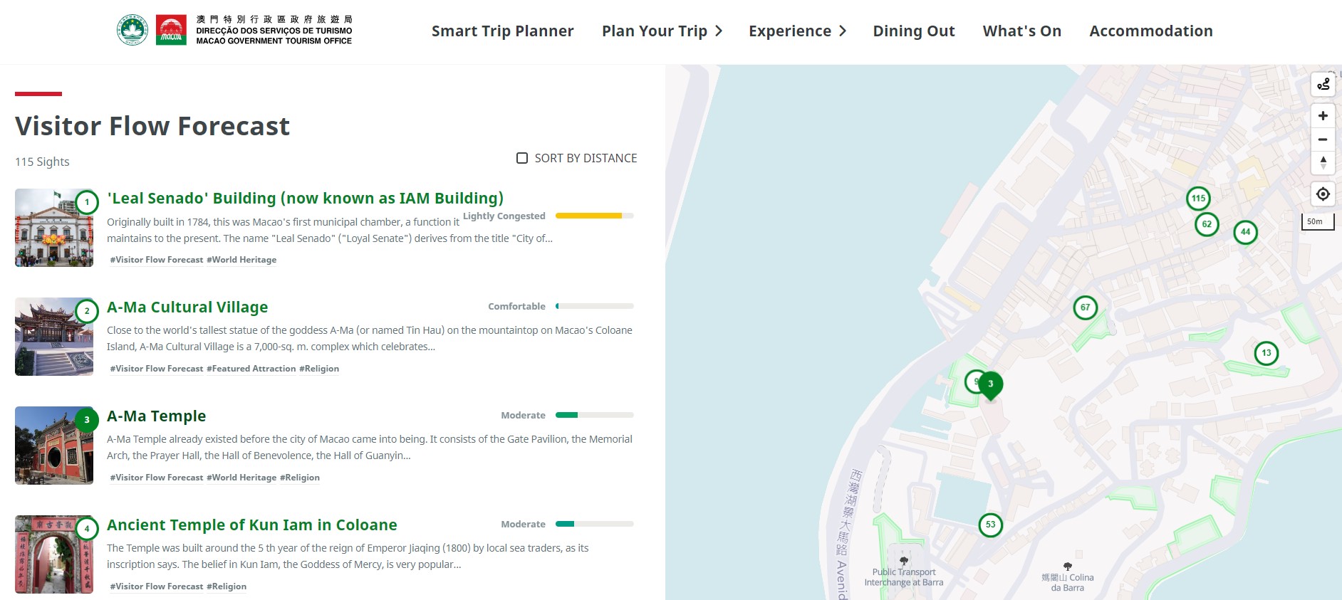 MGTO encourages visitors to harness the “smart application for visitor flows” to check the forecast of visitor flows at 115 tourist attractions in Macao on the website (https://poimonitor.macaotourism.gov.mo) to facilitate sightseeing in staggered periods. By accessing the Public Security Police Force’s “Real-Time Information Platform of Border Ports” (http://www.fsm.gov.mo/psp/pspmonitor), visitors can check real-time border-crossing images at various ports of entry for better timing of arrival and departure.