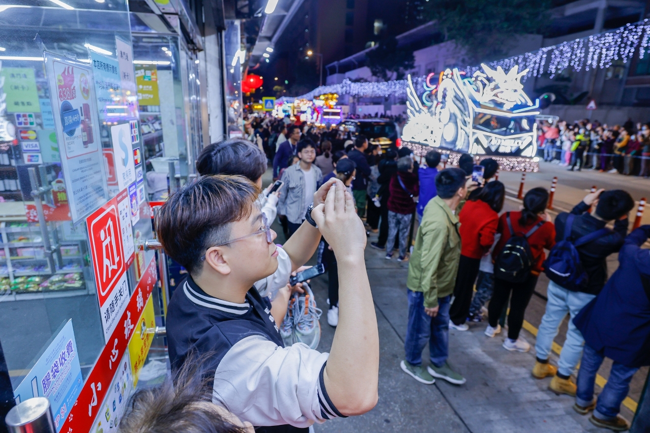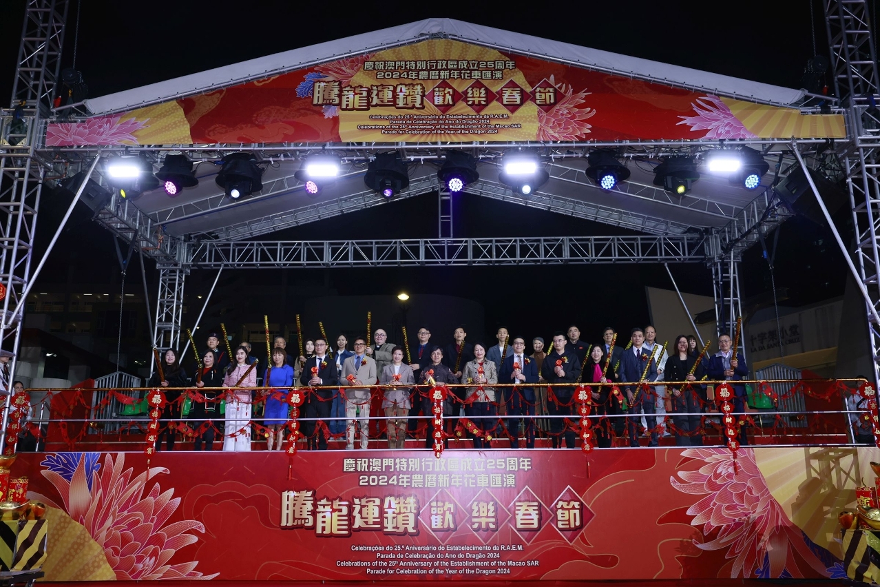 The second parade of the “Celebrations of the 25th Anniversary of the Establishment of the Macao SAR – Parade for Celebration of the Year of the Dragon 2024” was held tonight (17 February), the 8th day of Chinese New Year. 15 uniquely-stunning floats filled the northern district with best wishes and carried on the festive ambience, attracting residents and visitors into the community for a memorable night of Chinese New Year, thereby invigorating the community economy.