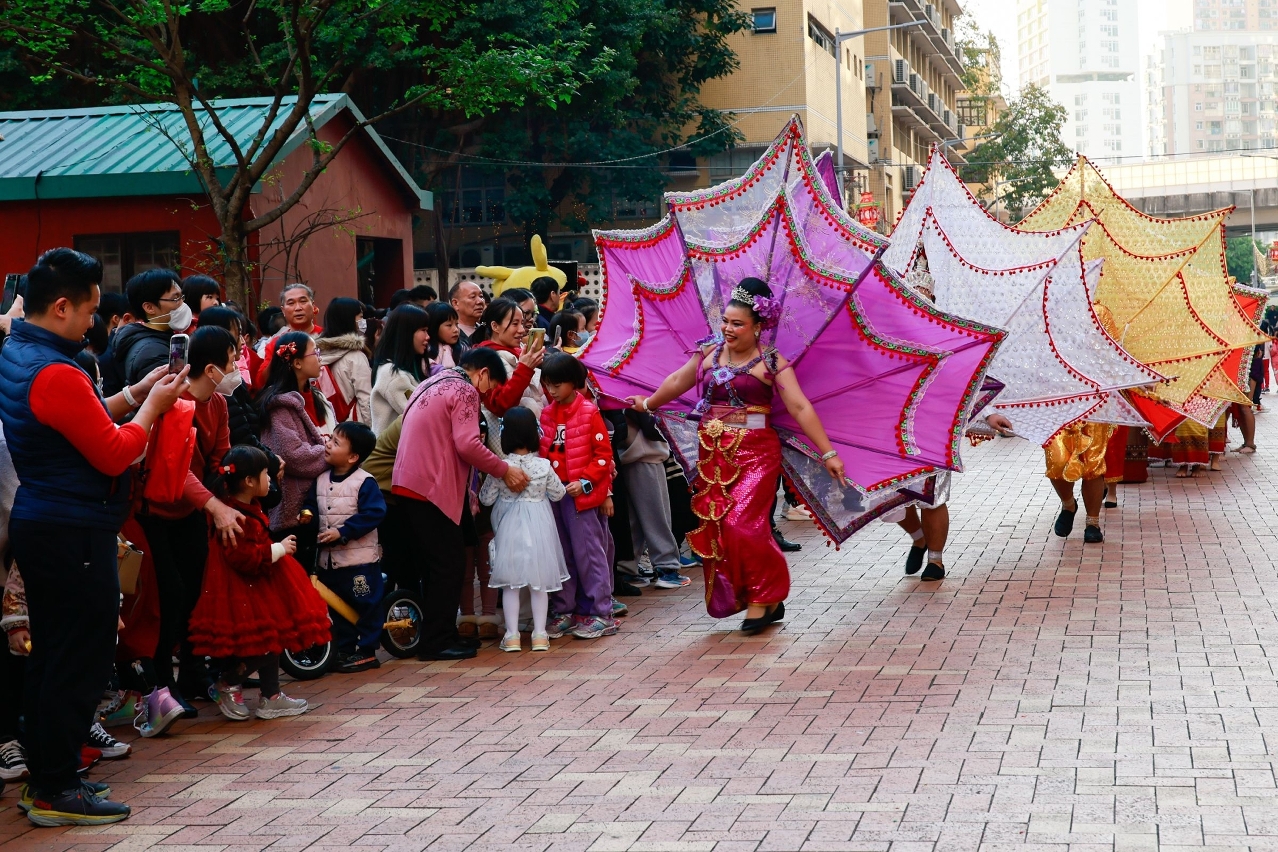 The “2024 Chinese New Year Activities” were extended to Tapia Village, where part of the community roadshow was held. There were other arranged performances such as an encounter with Macao Tourism Mascot MAK MAK, distribution of golden ingots by the three Gods of Happiness, Prosperity and Longevity, and Portuguese-style performance, to share festive joy with residents and visitors.