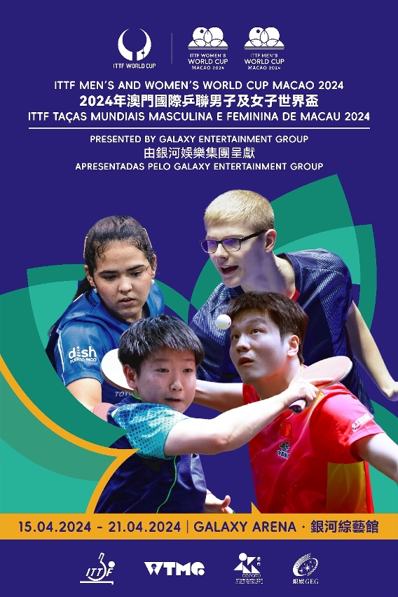 The ITTF Men's and Women's World Cup Macao 2024 presented by Galaxy Entertainment Group, sanctioned by the International Table Tennis Federation (ITTF), organized by the Sports Bureau, Galaxy Entertainment Group and World Table Tennis Management Group Limited (WTMG), and co-organized by the Macau Table Tennis General Association, will be held at the Galaxy Arena from 15 to 21 April. Tickets to the event will go on sale starting 22 March.